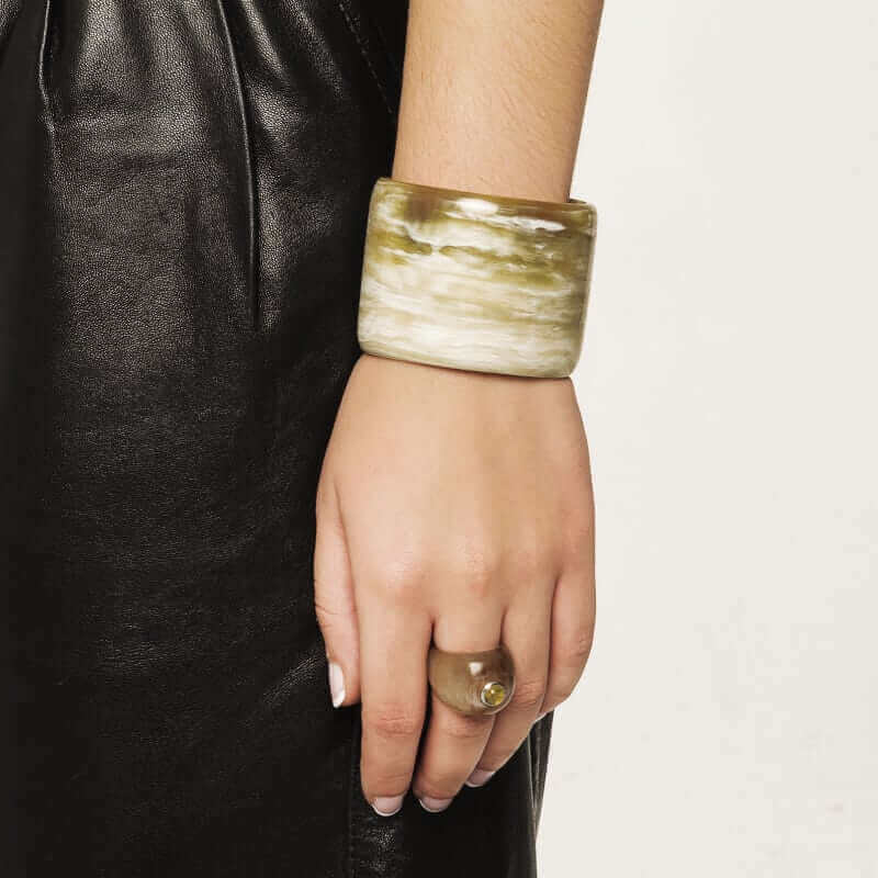 Back in France, she realized that horn had fallen out of use and decided to restore its elegance and relevance, making it a signature element of her creations.
