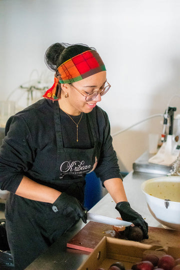 All our production is done by hand, from the manual cutting of fresh fruit to bottling.
