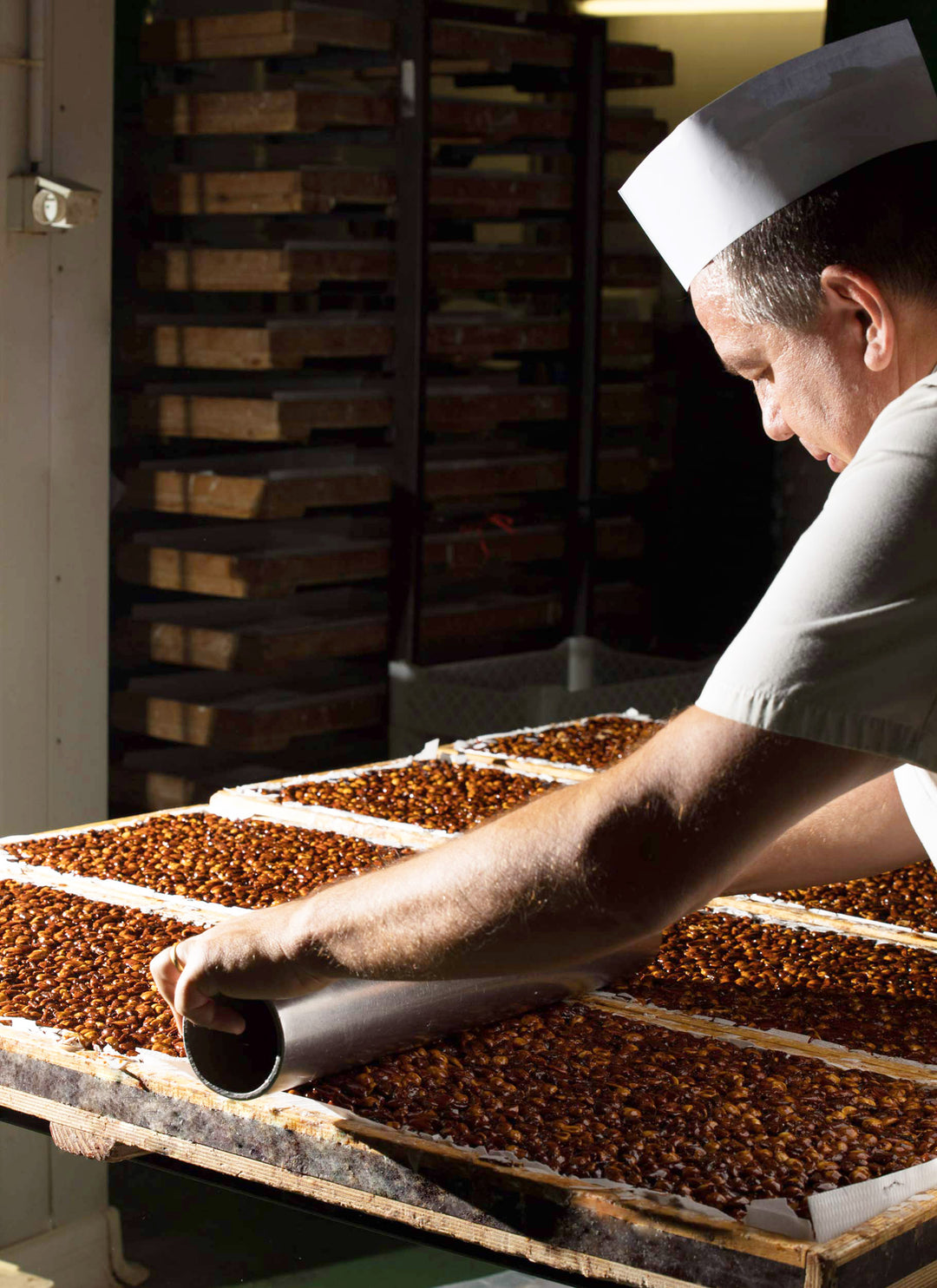 Our ingredients are also rigorously selected. Our fruit jellies manufacturer uses pure fruit, from local orchards chosen for their quality. Our recipes favor the noble ingredient. For example, while many nougats have sugar as the first ingredient, ours is made up of 60% almonds and honey. Our caramel uses the famous artisanal Bordier butter in its recipe.