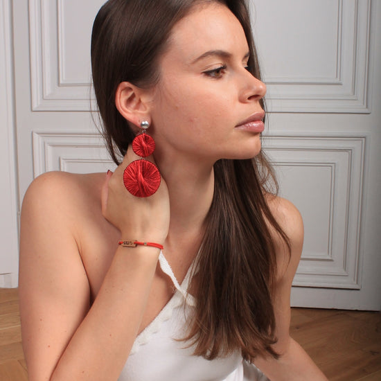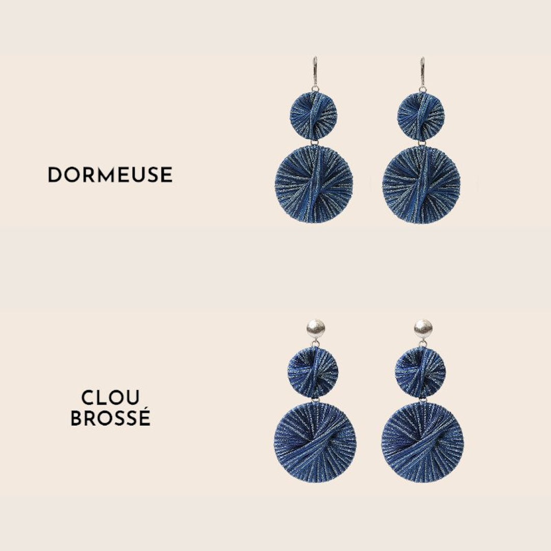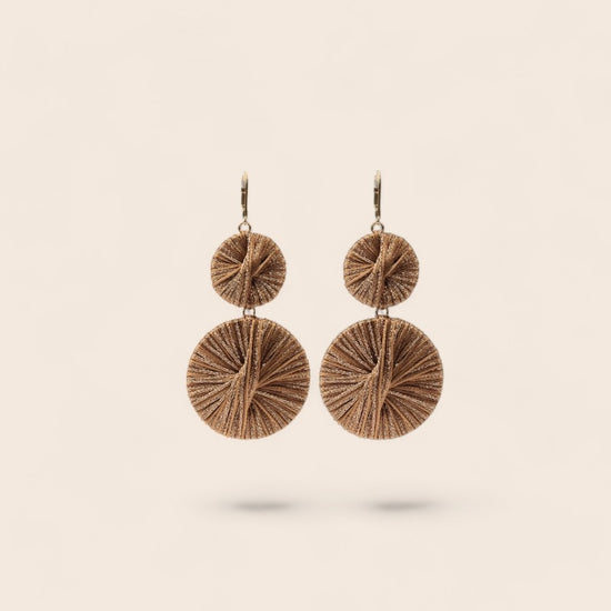 Their unique design combines textile artistry with sculptural presence, making them a standout accessory for confident, modern women. Lightweight and expressive, the Athéna Earrings elevate both casual and formal looks with ease.