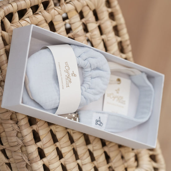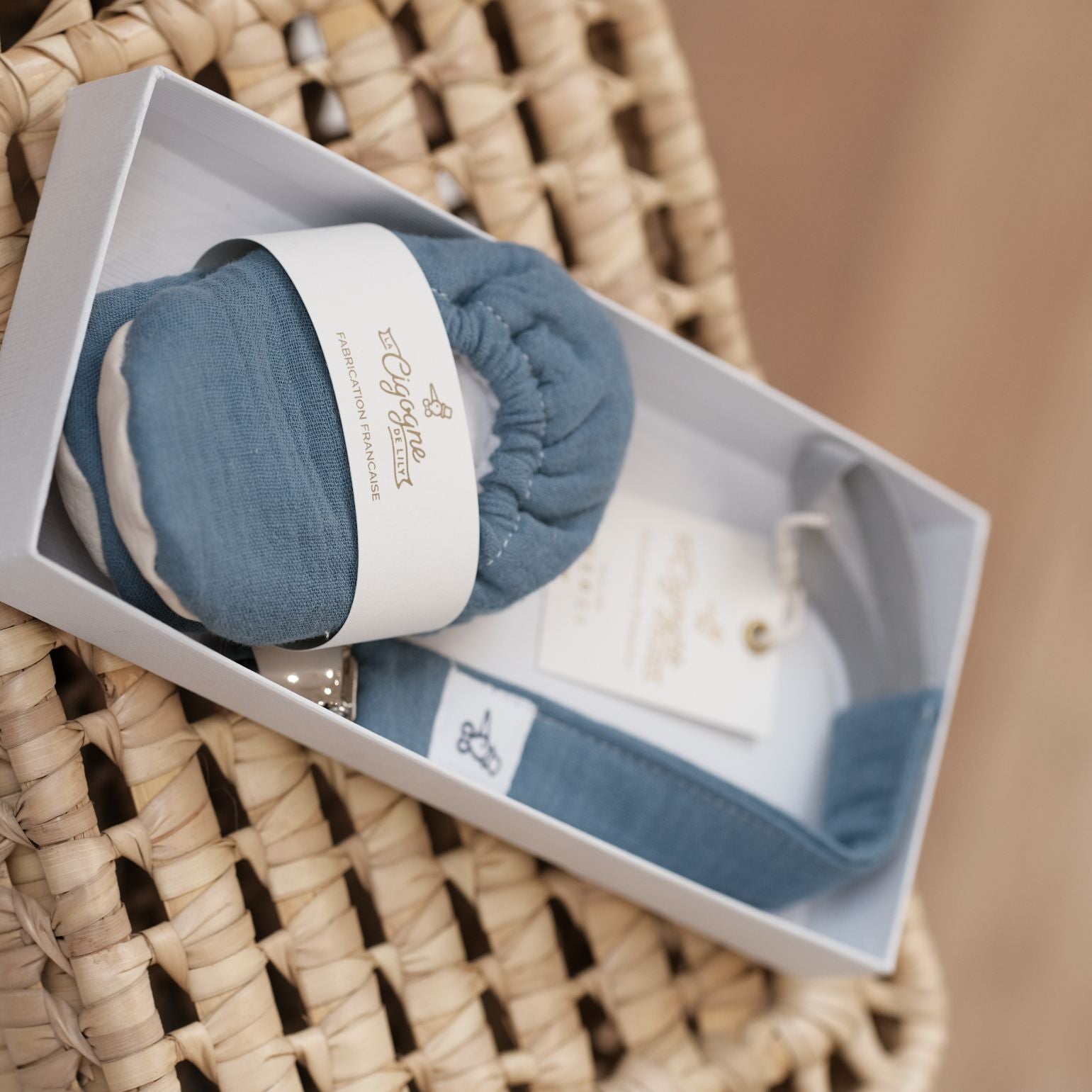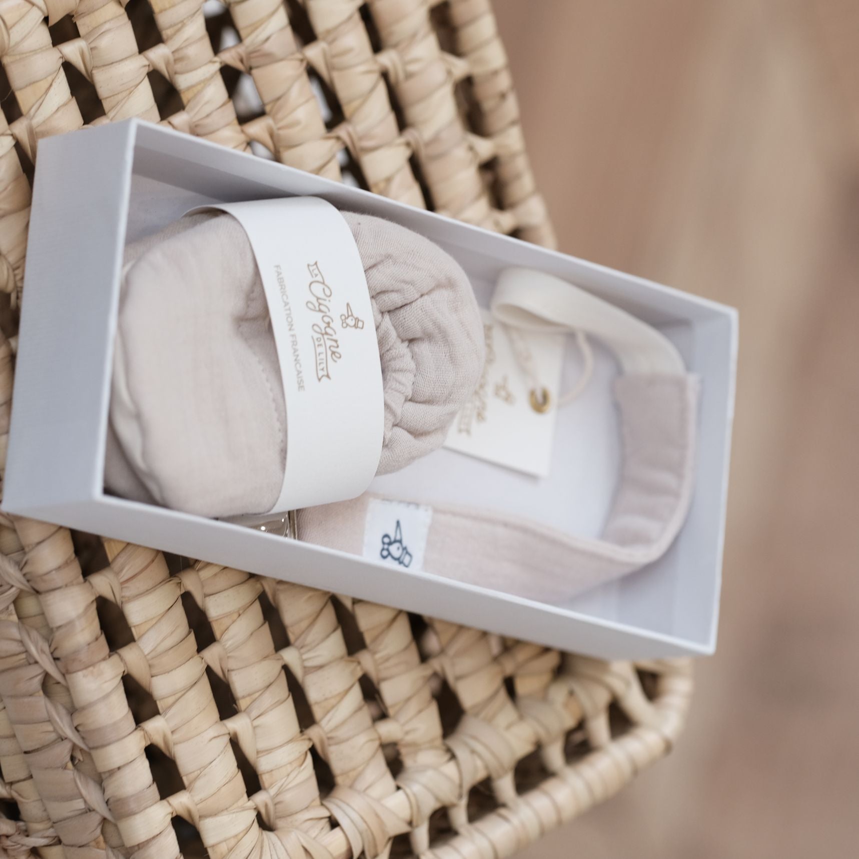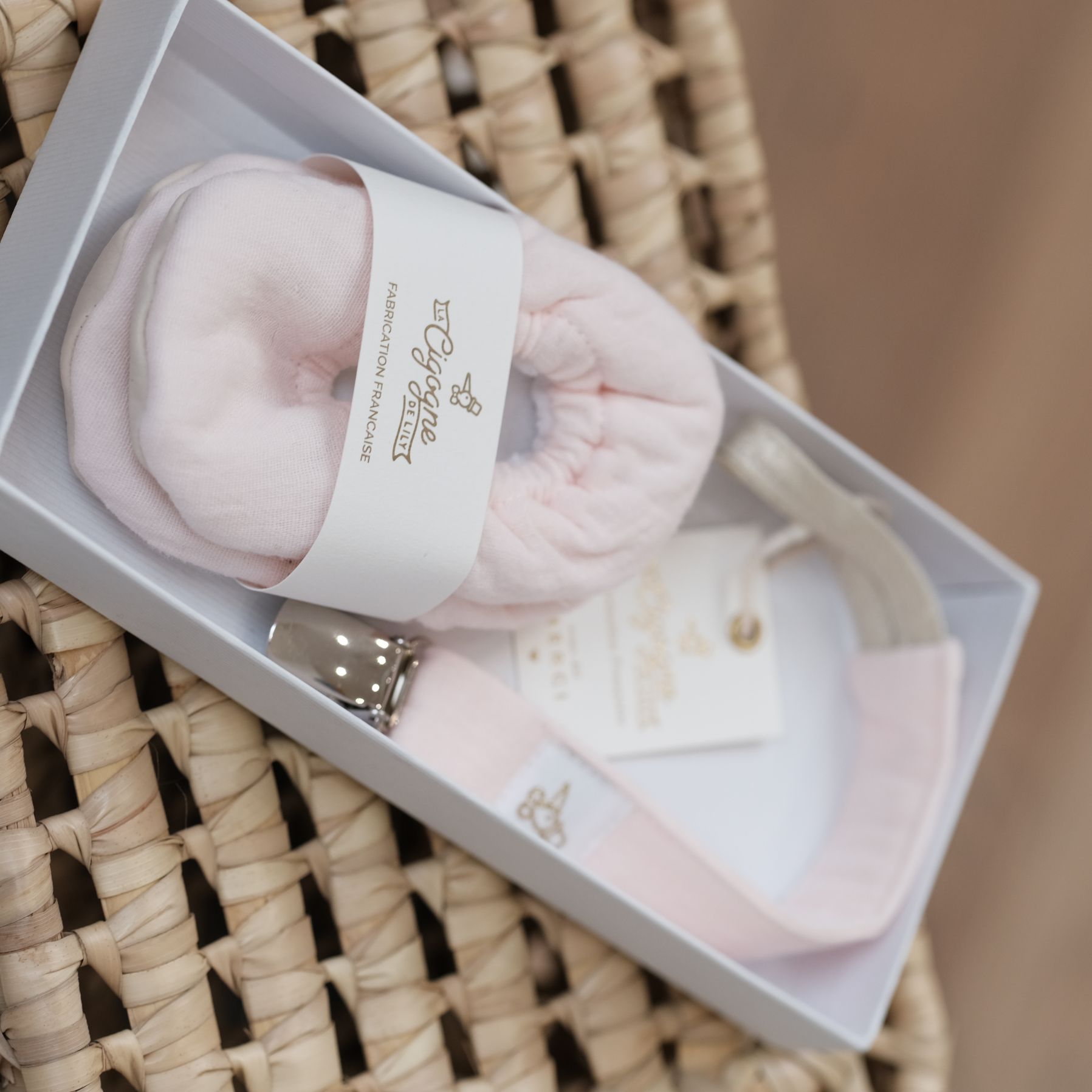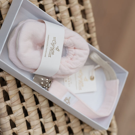 A delightful birth gift that’s sure to be a hit! This beautiful box includes a pair of cozy slippers and a stylish pacifier clip, perfect for any newborn.
