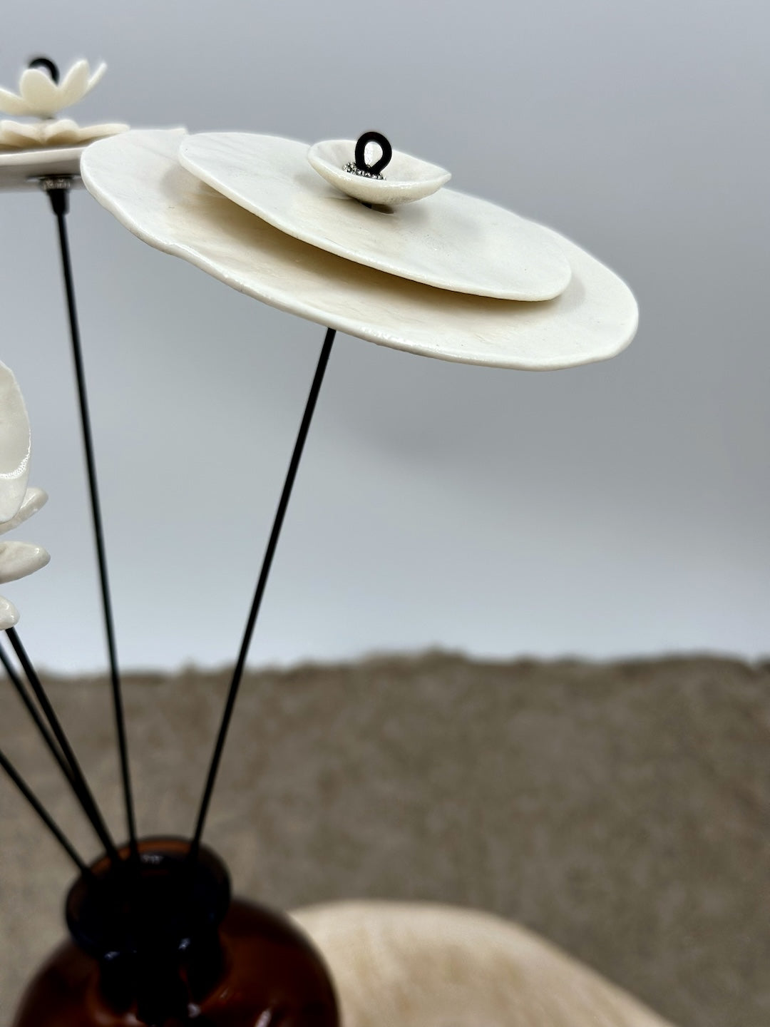 • 1 white porcelain "Dish" flower Dimensions : diameter 4 cm, shaft height 33 cm.