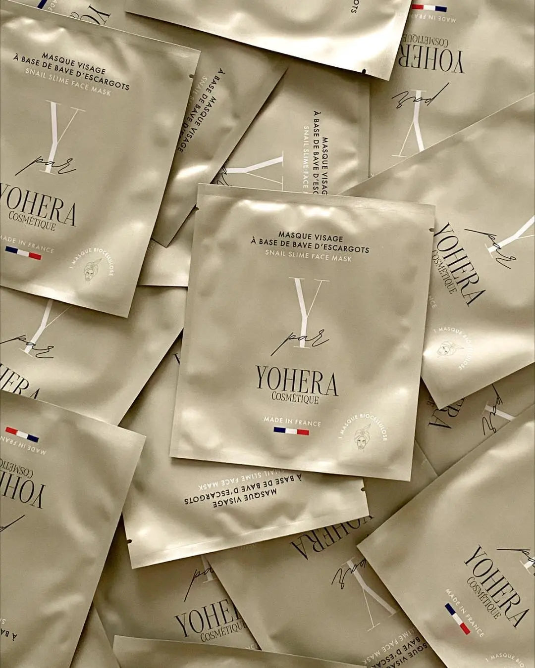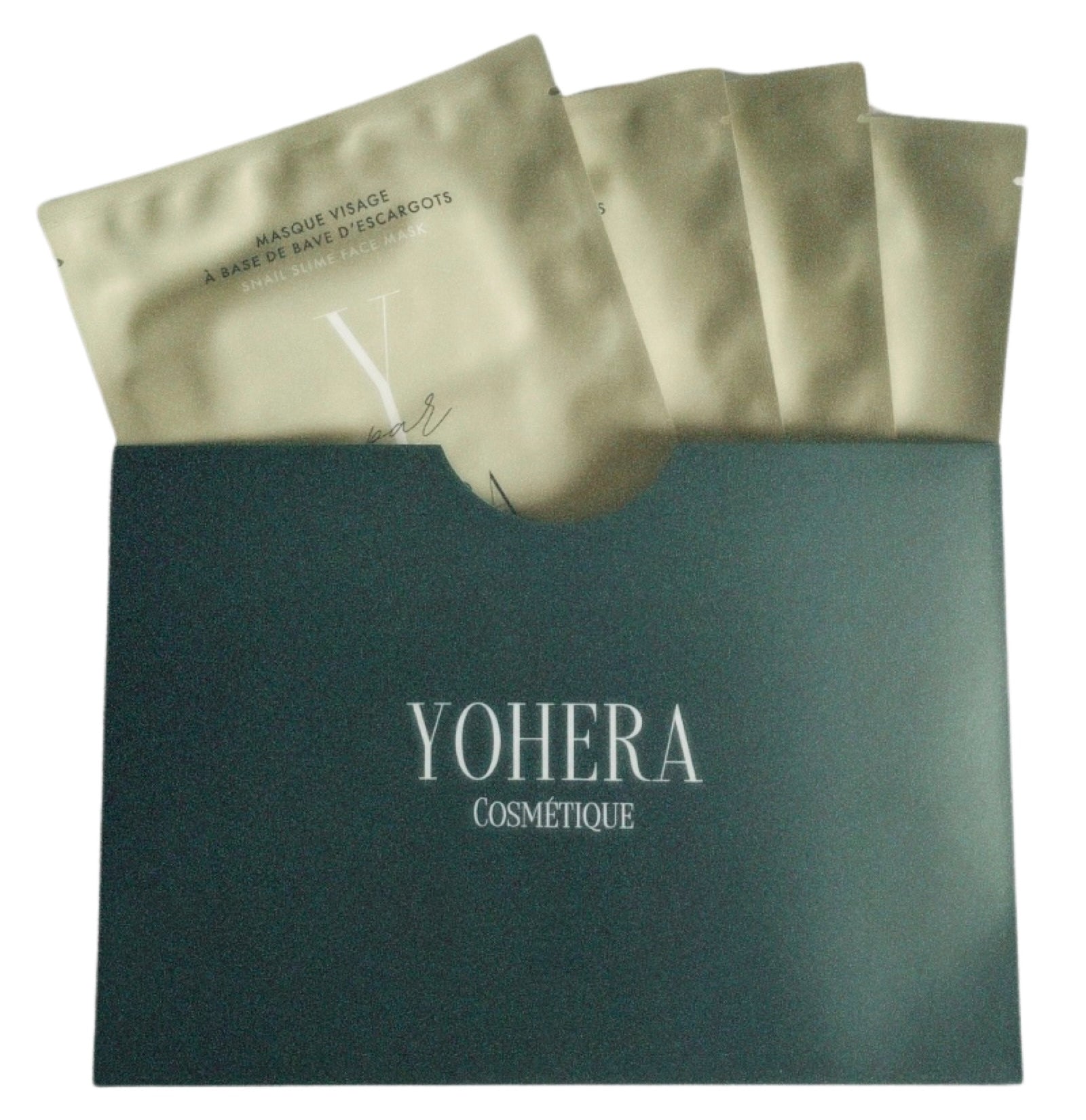 The Yohera Y Mask, made with snail slime, is an innovative treatment that nourishes and regenerates the skin. After 4 years of research, it uses 100% natural bio-cellulose to perfectly adhere to the contours of your face, allowing the snail slime to penetrate deeply, promoting cell renewal.