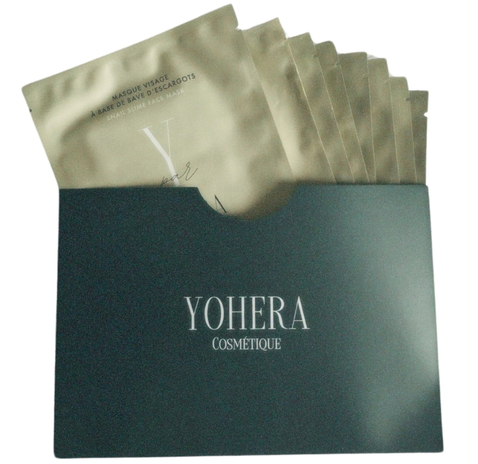 The Yohera Y Mask, enriched with snail slime, is an advanced skincare treatment designed to deeply nourish and regenerate the skin. After four years of research, this innovative mask uses 100% natural bio-cellulose, ensuring a perfect fit to the contours of your face for maximum absorption. The snail slime penetrates deeply to promote cell renewal and enhance skin texture.