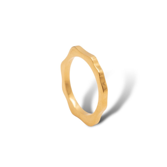 The Ocean Brilliant Polished Ring by Naya Jewelry is a sleek, sculptural piece handcrafted in France from sterling silver and finished with luminous 18K gold vermeil.