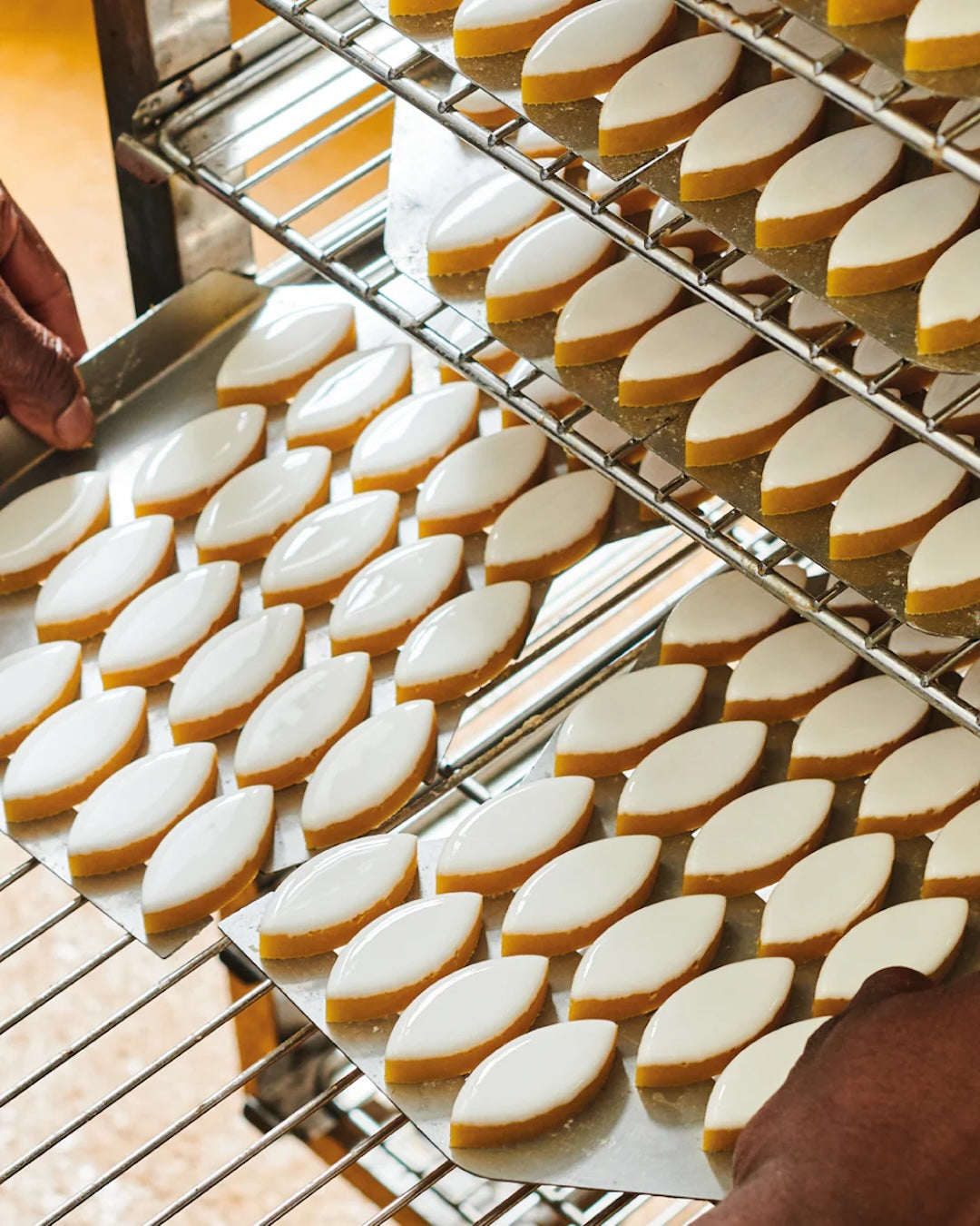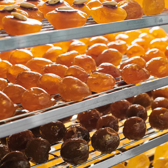 Our world-renowned Calissons d’Aix are crafted with finely ground almonds, candied melon at its core, and orange peel, creating a smooth, balanced sweetness. They are paired with our exquisite candied fruits, prepared through a time-honored confisage process. This tray features a variety including apricots from Provence, pineapple, angelica, citron, cherries, lemon, clementines, figs, melon slices, orange, peach, pear, and plum.