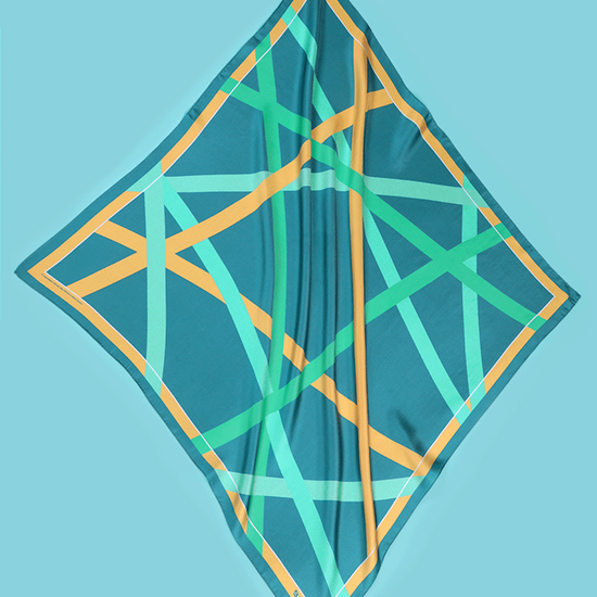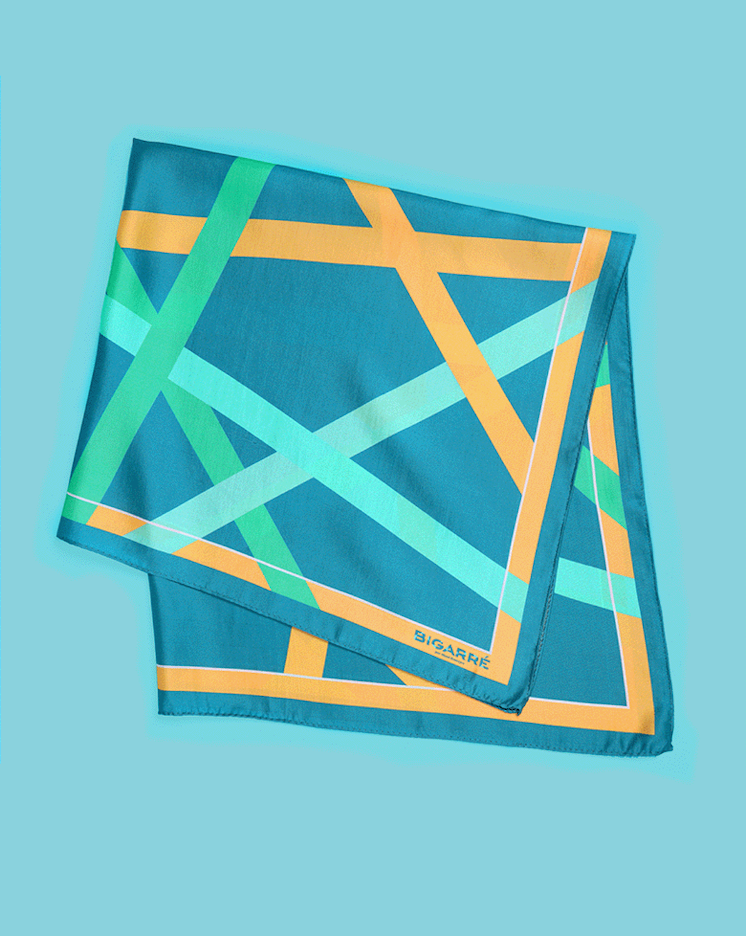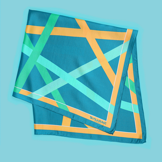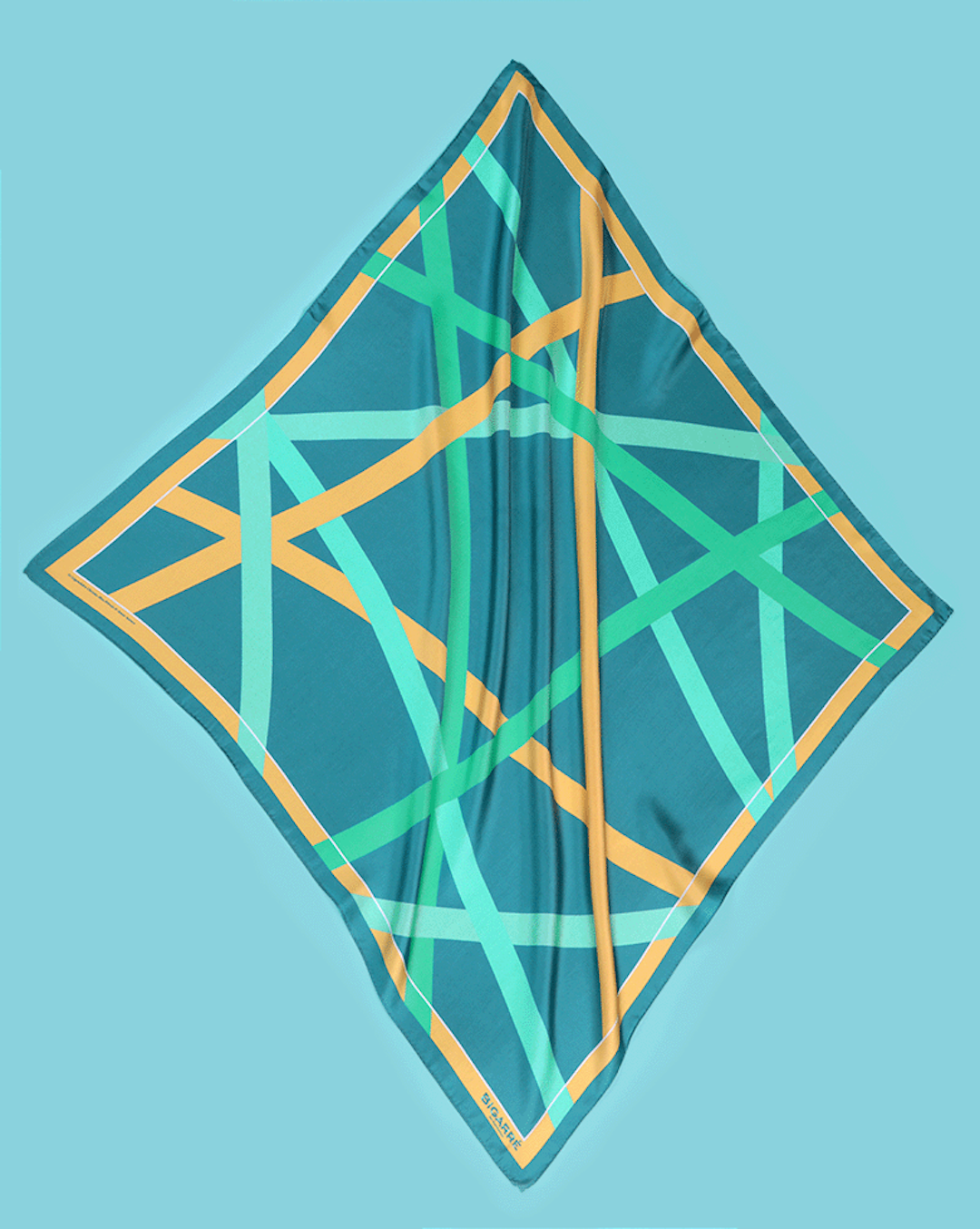 Discover the artistry of contemporary design with Le Légendaire Christo – Duck Blue & Aurora Yellow, a limited-edition silk square designed, woven, printed, and handcrafted in France. Part of the Christo series, this creation is more than an accessory – it is a wearable work of art.
