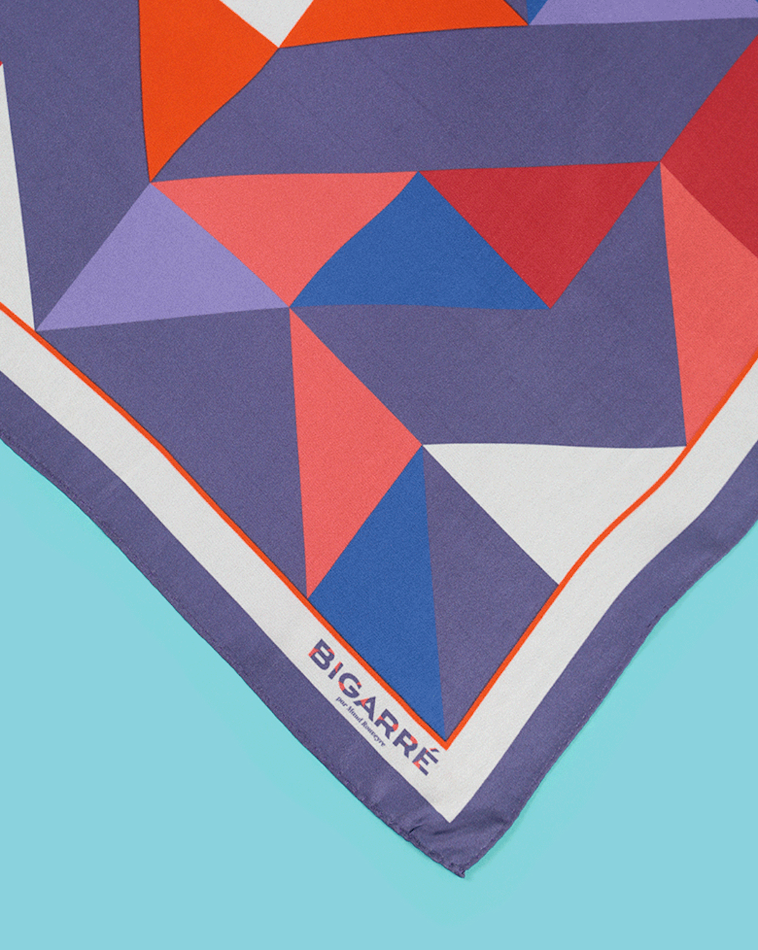 Your silk scarf is delivered with a certificate of authenticity and is carefully folded, protected with tissue paper, and placed in an elegant white pouch stamped with the BIGARRÉ brand.