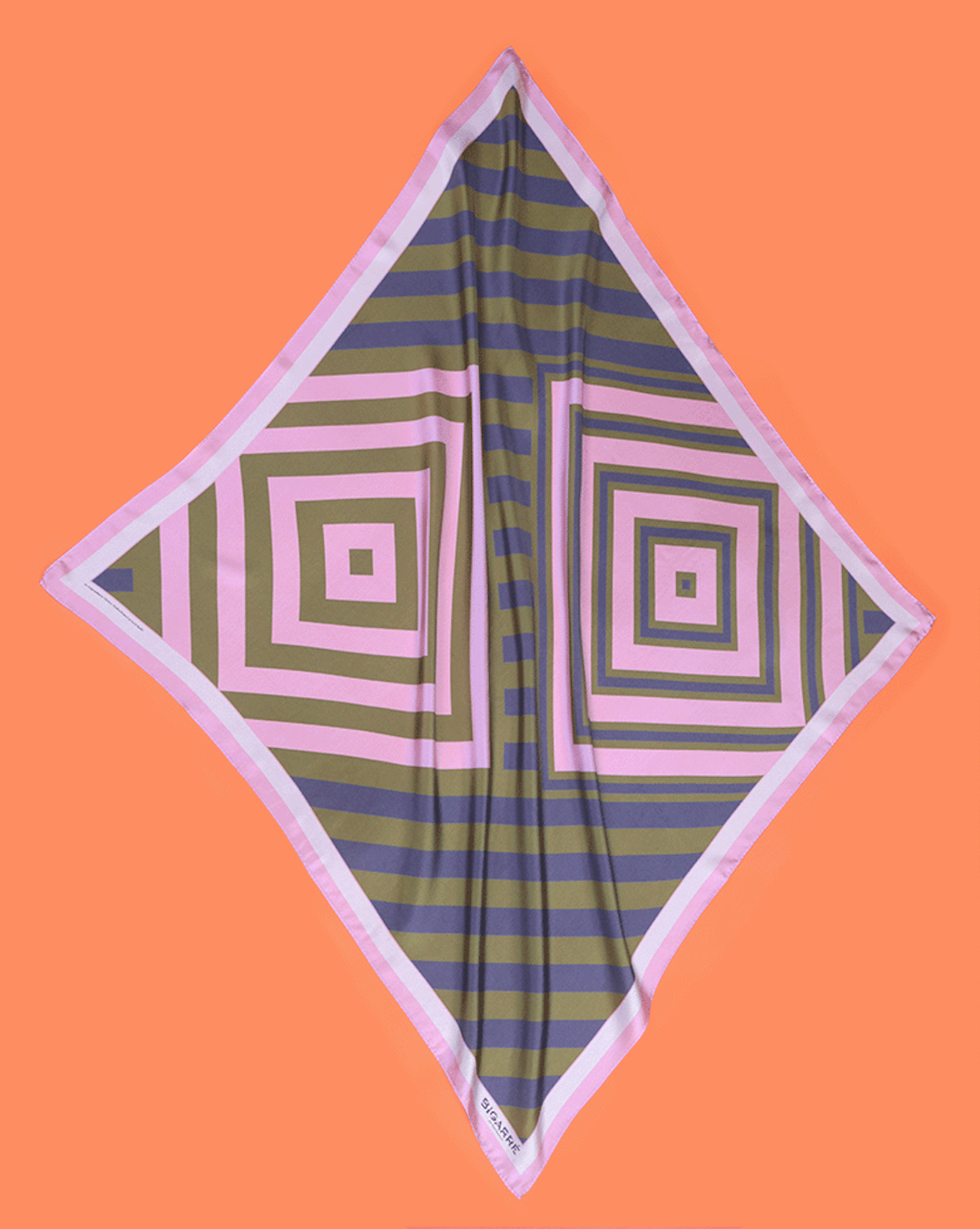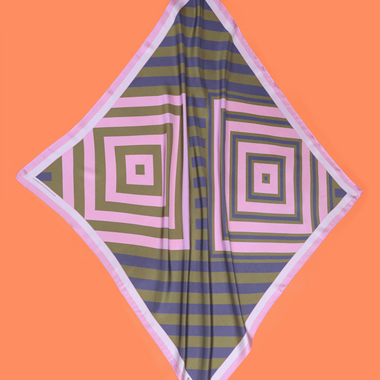 The Victor series is defined by its bold interplay of diagonal lines and vibrant colored squares. This silk print draws inspiration from the geometric abstract paintings of renowned artist Victor Vasarely, the visionary father of Optical Art, celebrated for his masterful use of minimal shapes and colors to create striking visual effects. The result is a dynamic and visually captivating design that transforms any outfit into a statement of modern elegance.