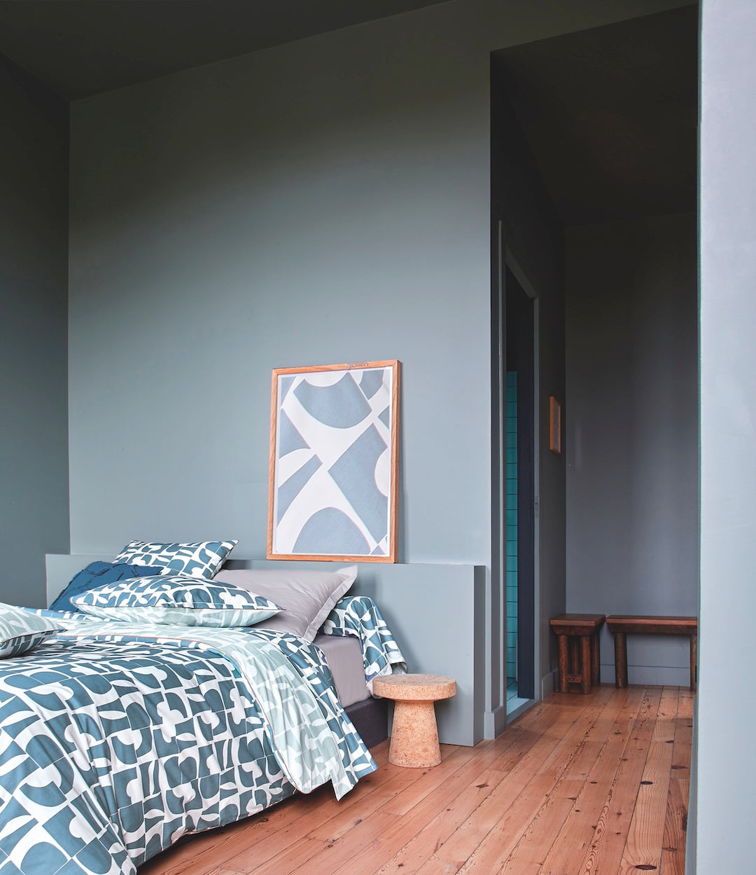 CRAFT Bleu Paon: Geometric Elegance for Your Bedroom