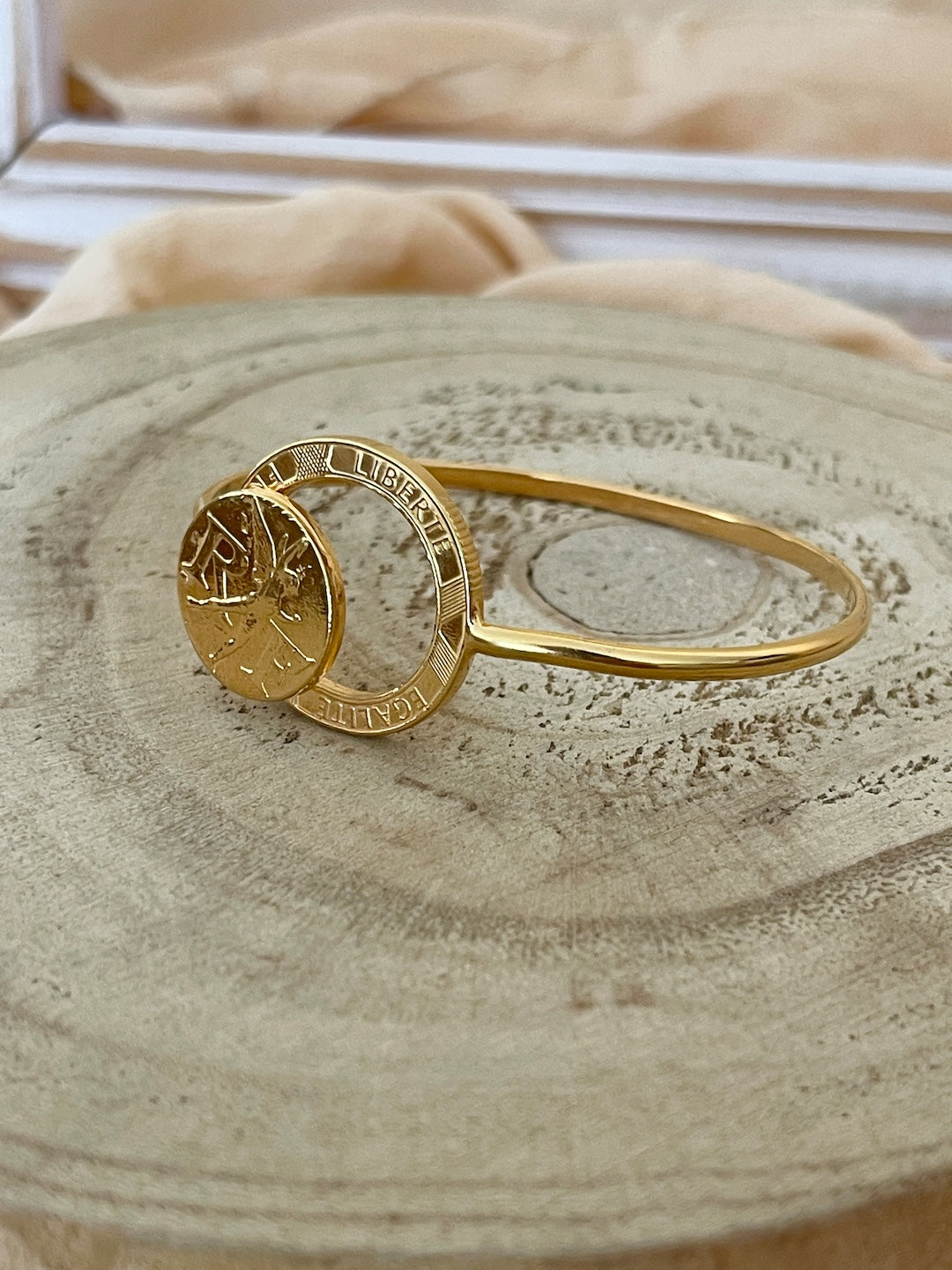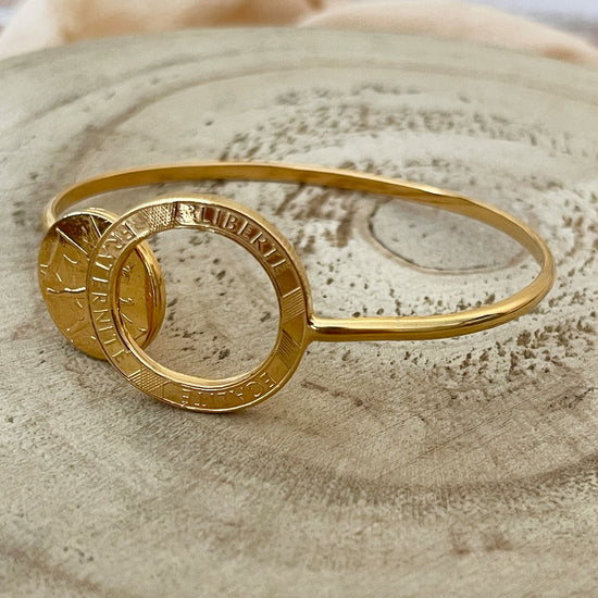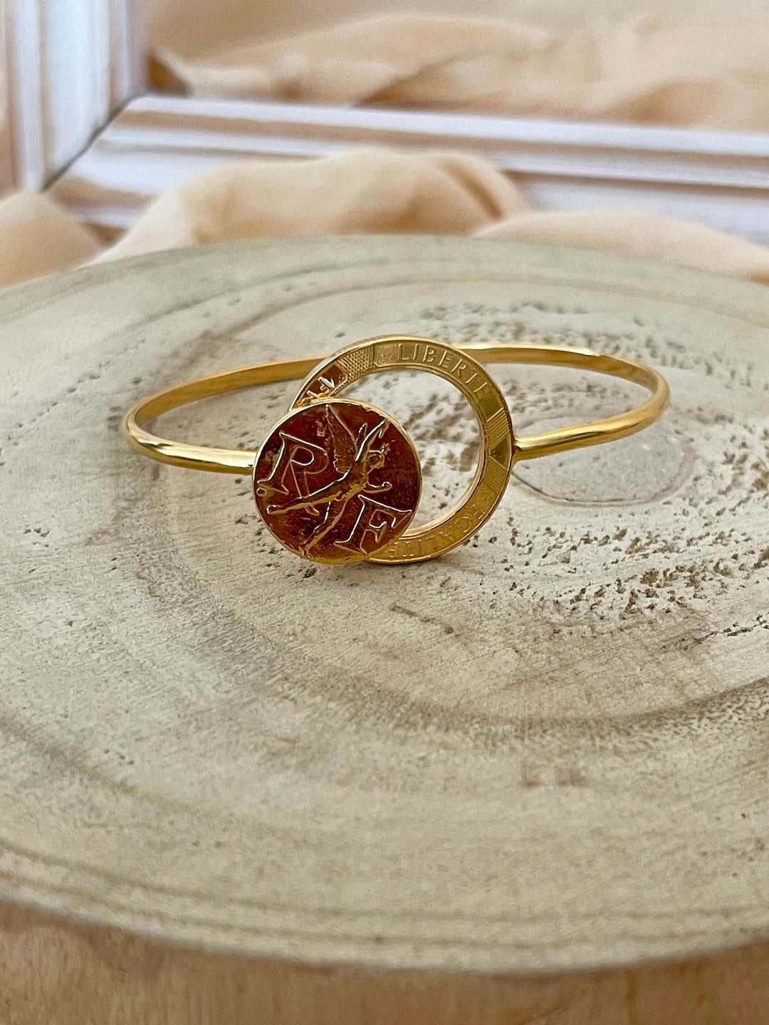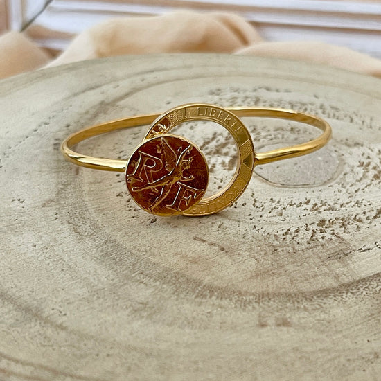 This unique bracelet is crafted from a genuine 10-franc Génie de la Bastille coin, a historic French coin that circulated from 1988 to 2001. More than just an accessory, it is an elegant and original piece of jewelry that embodies the rich history and culture of France.