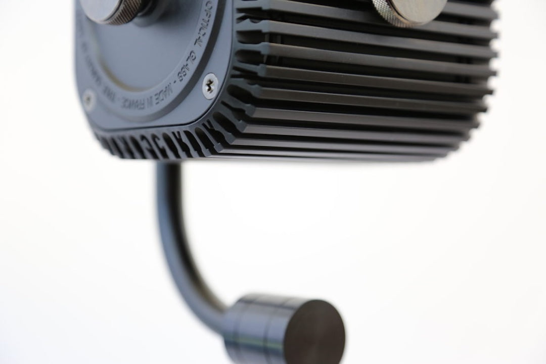 Control is as elegant as the lamp itself. A discreet analog dial, inspired by vintage amplifiers, offers a tactile and intuitive lighting experience. Advanced features such as