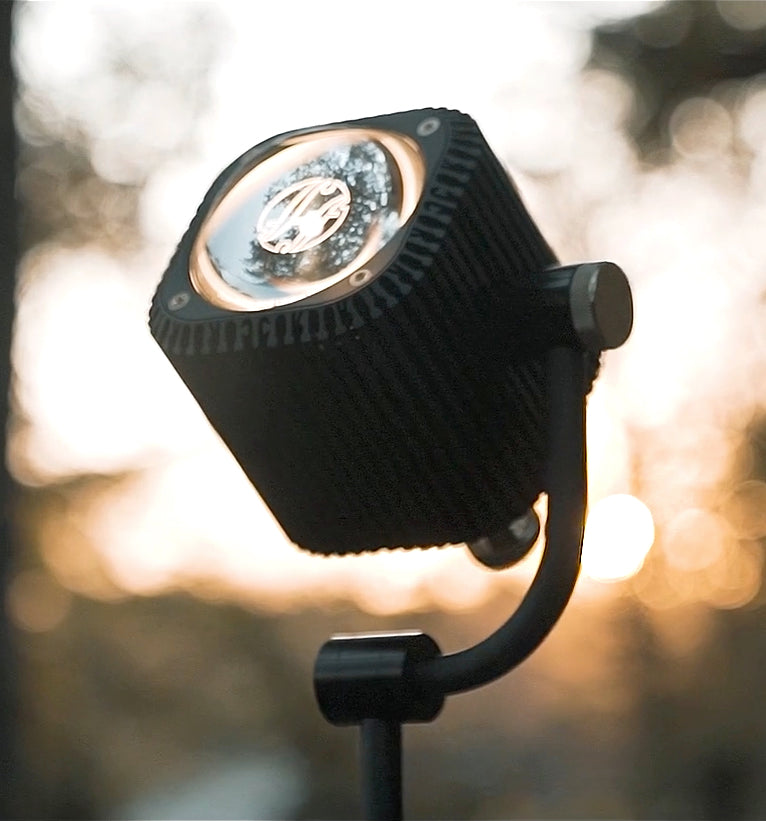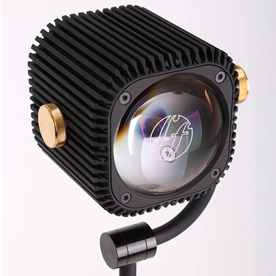 Each unit is crafted on 5-axis CNC machines from noble materials including platinum, titanium, aluminum, copper, brass, and stainless steel. Surfaces are hand-finished — polished, brushed, or satin — and protected by aerospace-grade treatments for exceptional durability. At its core, a custom aspheric glass lens ensures pure, precise light distribution.