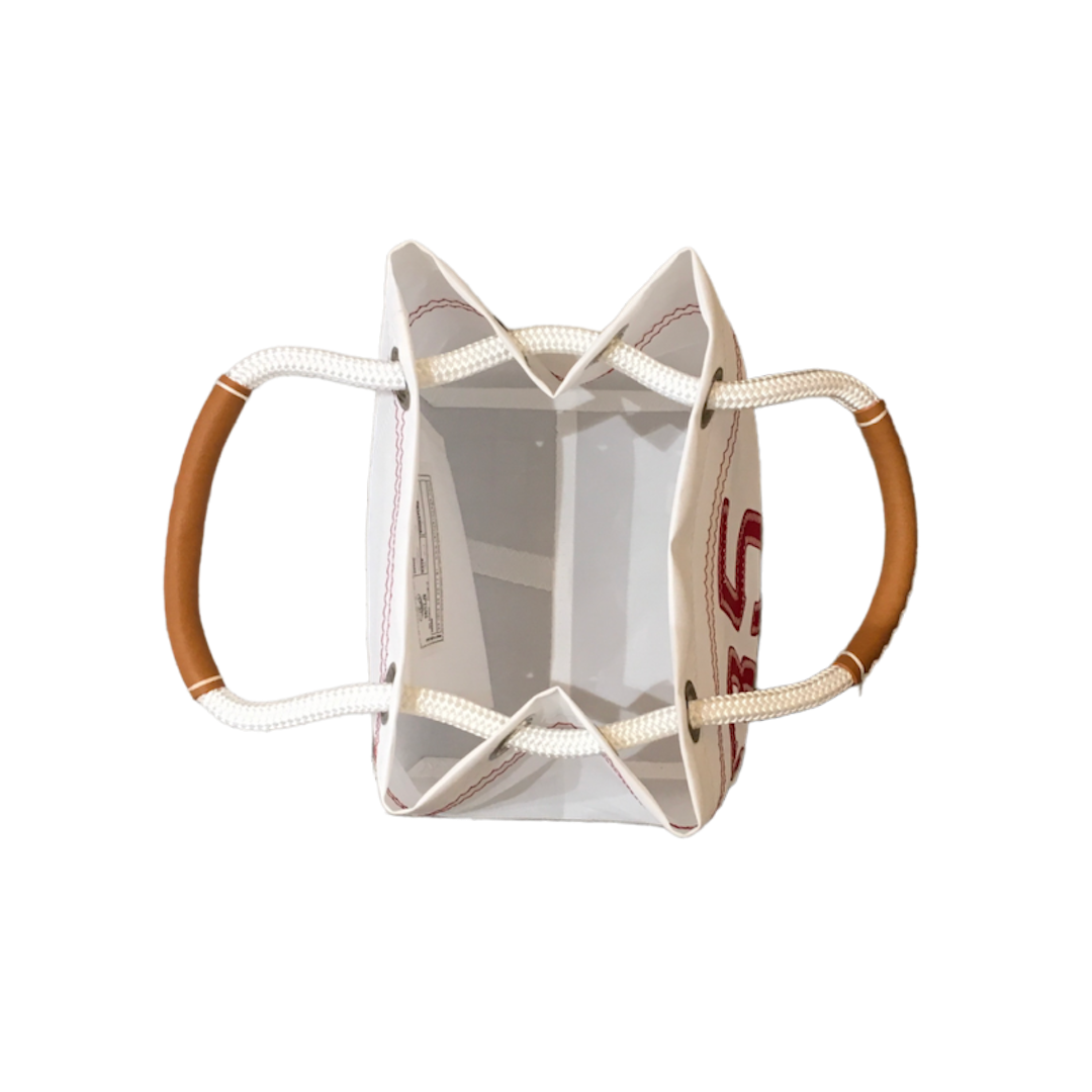 Crafted from upcycled white Dacron sailcloth, this handbag is lightweight, resilient, and easy to maintain. Stylish, sustainable, and built to last, the Cube S Red is designed to accompany you wherever life takes you.