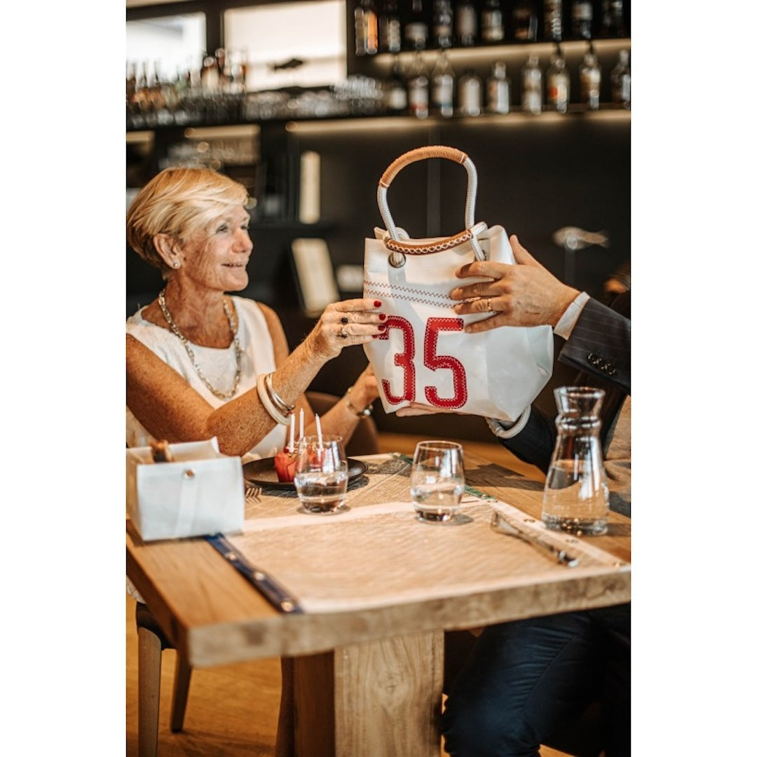 The Cube S Handbag is your ideal companion for everyday adventures – whether strolling through the city streets, relaxing by the sea, or exploring the countryside. Featuring its iconic red number 35, this bag brings a distinctive nautical charm and a touch of individuality to your look.