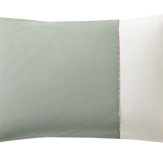 Our iconic design, reimagined for a modern and elegant interior, DUO combines two shades of cotton percale for a refined and sophisticated look: White/Hemp, White/Ochre, and White/Sage. Each piece is adorned with multicolored piping, creating a sleek and stylish finish.
