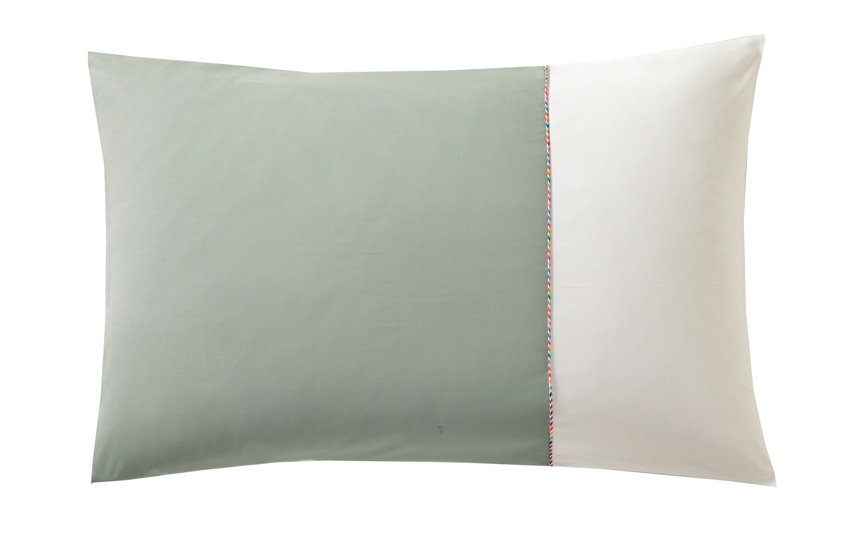 Our iconic DUO design has been reimagined for a modern and sophisticated interior, combining two elegant shades of cotton percale: White/Hemp, White/Ochre, and White/Sage. Each piece is finished with multicolored piping, giving it a refined and contemporary look.