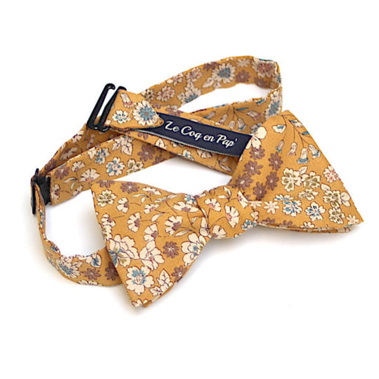 Add a touch of warmth and playfulness to your special occasions with this Father & Son Bow Tie Set in Mustard Yellow Floral Frou Frou. The rich mustard yellow combined with delicate floral patterns creates a lively, cheerful look that is perfect for weddings, family gatherings, or any event where fathers and sons want to stand out in style.