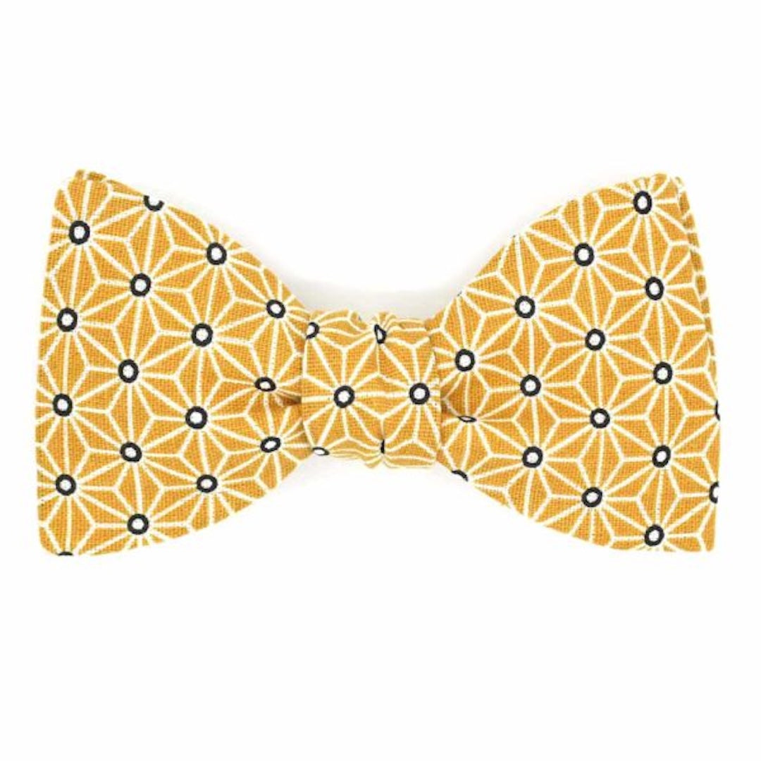 Father & Son Bow Tie Set in Mustard Yellow Japanese Saki – A Bold and Coordinated Duo