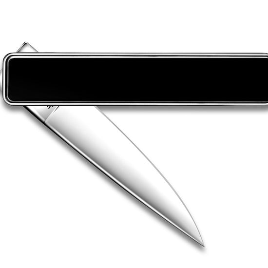 Le Privé: a pocket knife redefined for modern urban life. The "7/24" folding knife blends minimalist design with timeless craftsmanship to create a discreet, elegant companion for everyday carry. Its refined silhouette and deep black ceramic handle deliver a luxurious tactile experience while remaining robust and practical.