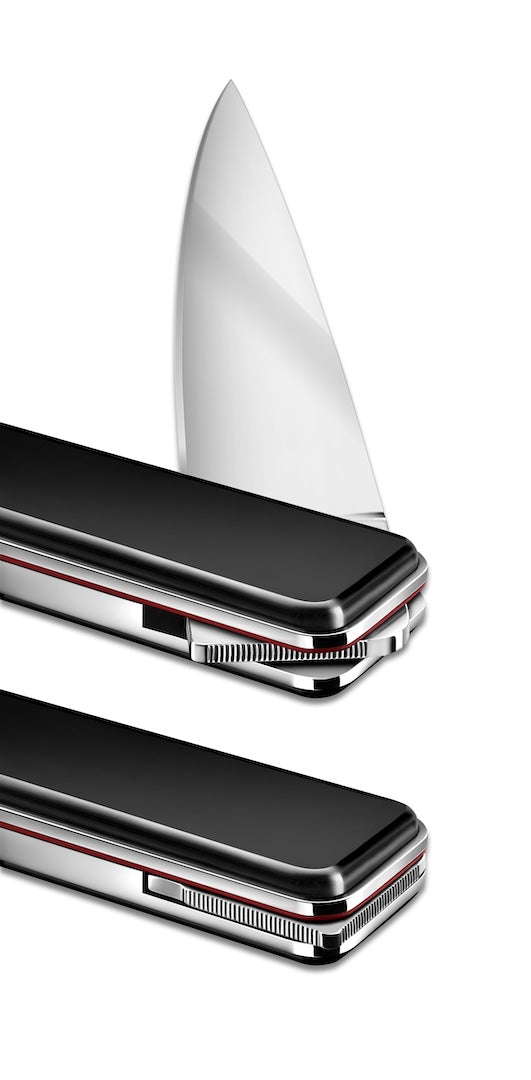 With its ceramic and steel composition, Le Privé carries a refined weight, reinforcing its sense of presence and exclusivity. More than just a tool, it is an objet d’art, where precision engineering meets sculptural beauty. Inspired by the mysterious concealed knives of the past, its sleek, enigmatic design adds a playful and intriguing element, inviting users to explore and appreciate its ingenious craftsmanship.
