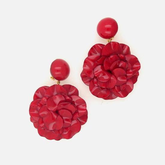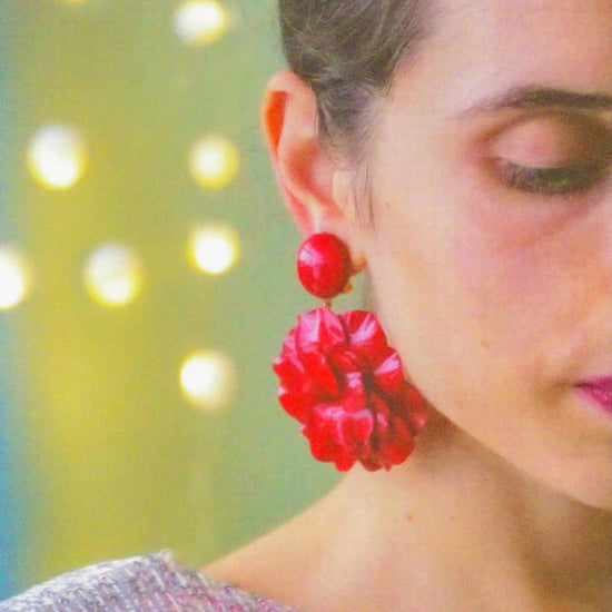 The vibrant red pigments are handcrafted, producing subtle variations in shade. Each pair is unique, with the Émaline resin giving the petals unmatched brilliance and lightness, perfectly highlighting the bold elegance of this design.