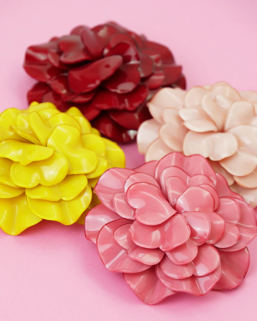 Its delicate size combined with a warm yellow tone makes this brooch an elegant yet cheerful accessory. The vibrant color evokes optimism and energy, perfect for enhancing both contemporary and classic outfits. The Géranium is available in several shades, giving you the freedom to match it to your style.