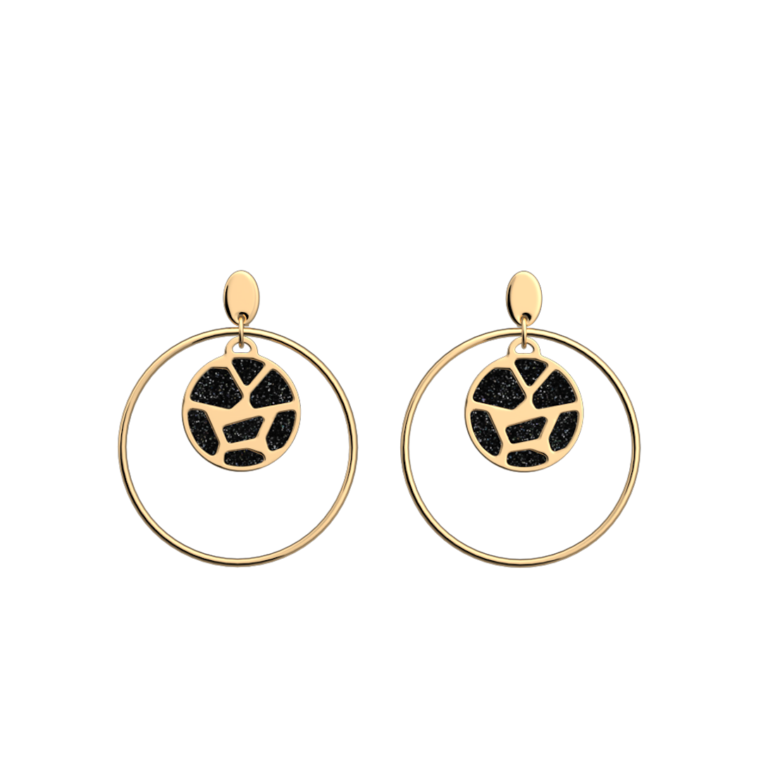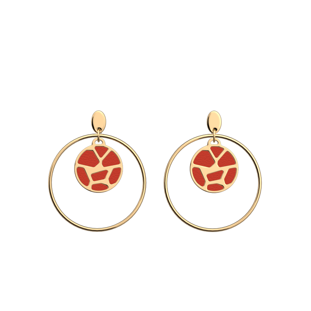 Crafted from fine gold-plated brass, these earrings reveal a play of light and texture that enhances their distinctive pattern. Their design celebrates the beauty of contrast, combining organic inspiration with the precision of French craftsmanship.