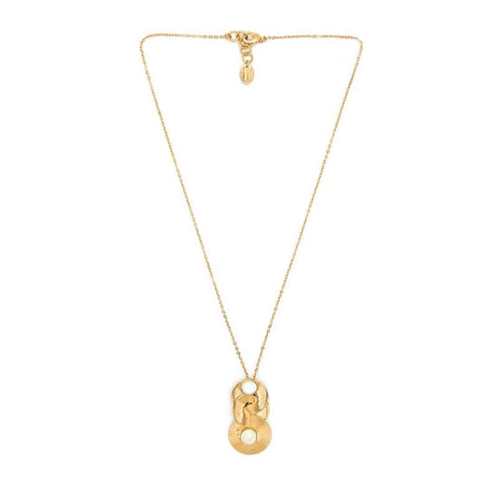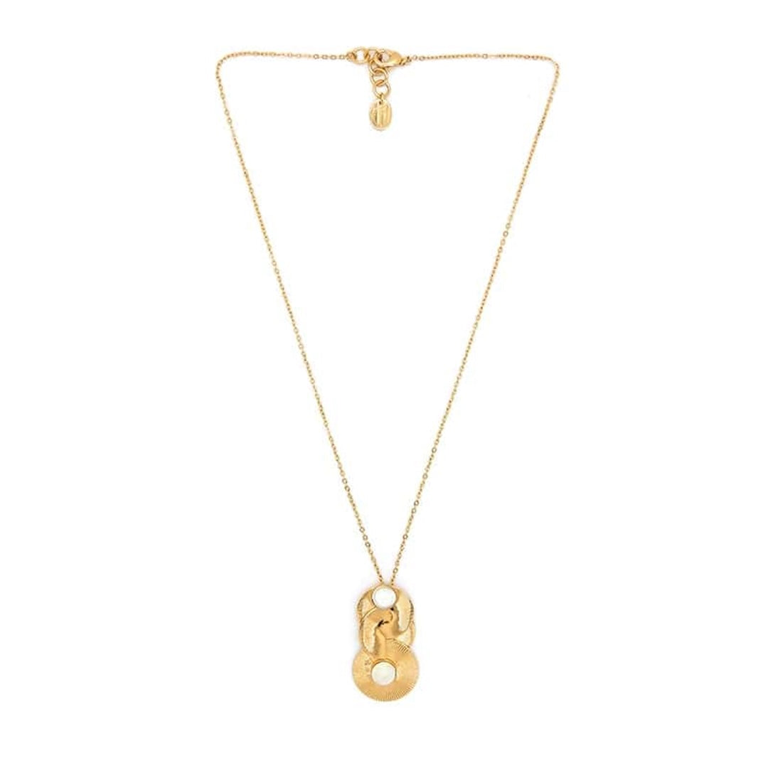 The Pandia necklace stands out with its three textured gold-plated medallions, creating a design that is both striking and timeless. With its bold presence and elegant lines, it brings a touch of confident sophistication to any look.