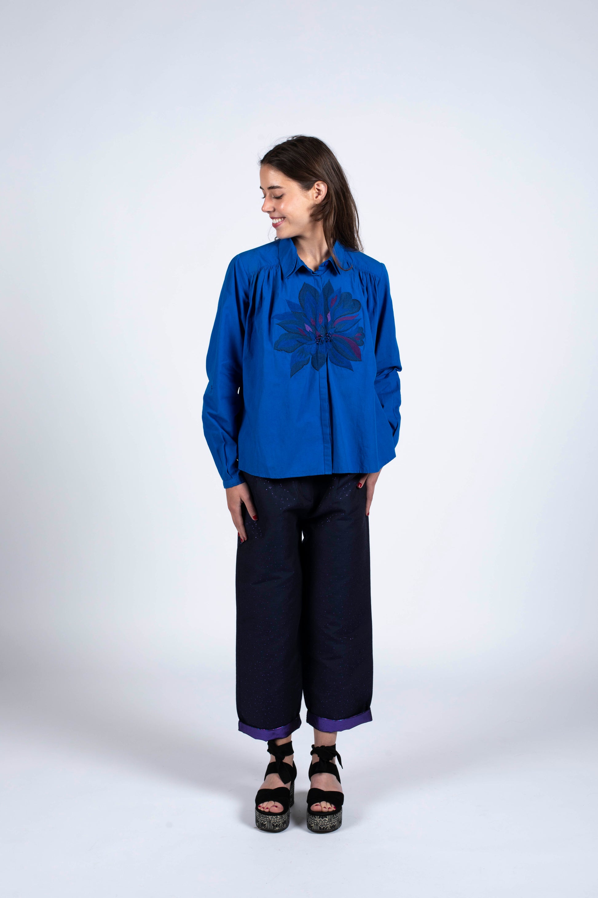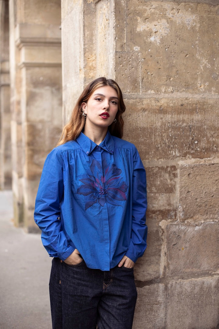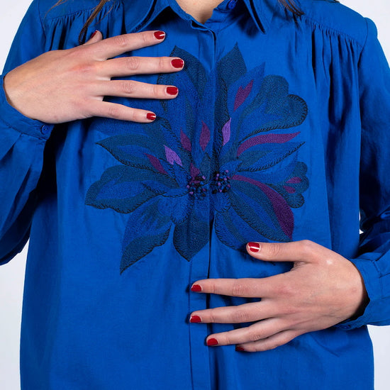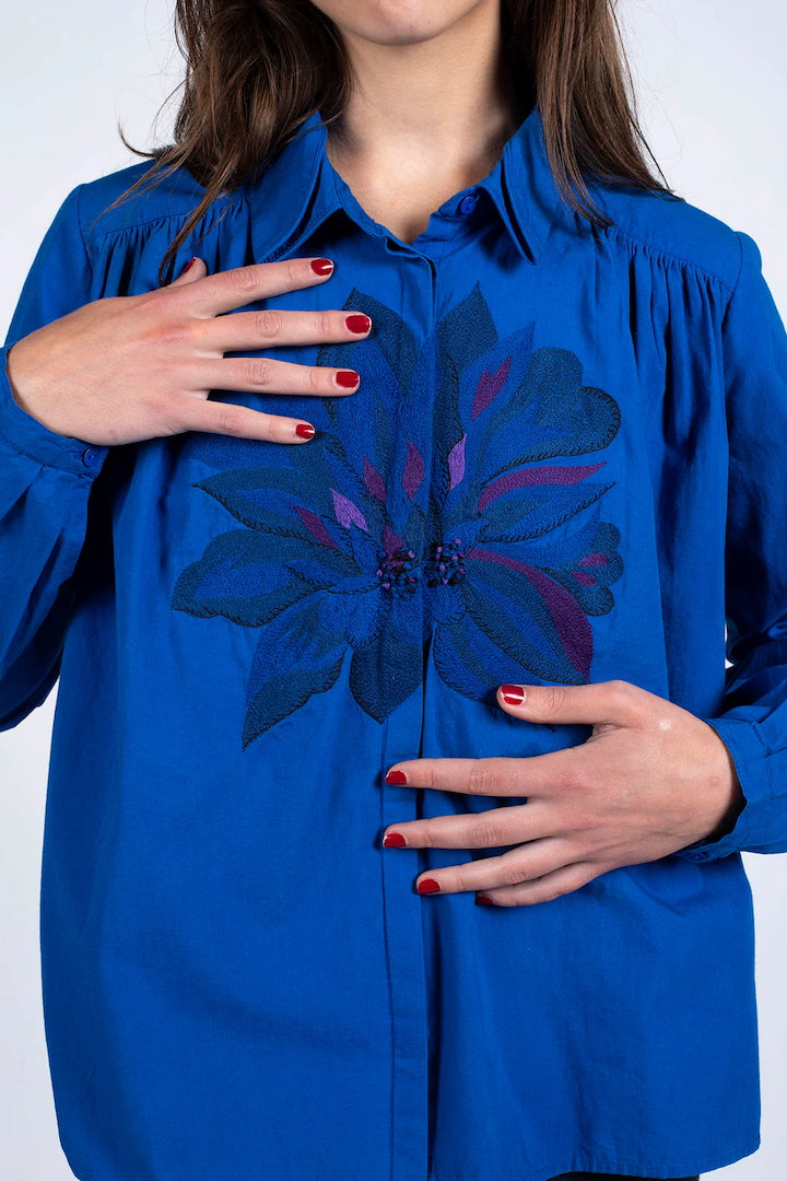 Hila Indigo Shirt – Organic Cotton & Artisanal Embroidery