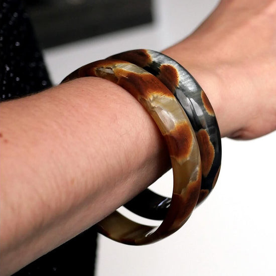 Each bangle is hand-carved from genuine horn, a noble natural material whose shades and textures vary endlessly. No two pieces are ever alike. Timeless and elegant, it is the perfect choice for women seeking a unique piece of jewelry with an authentic, natural charm.