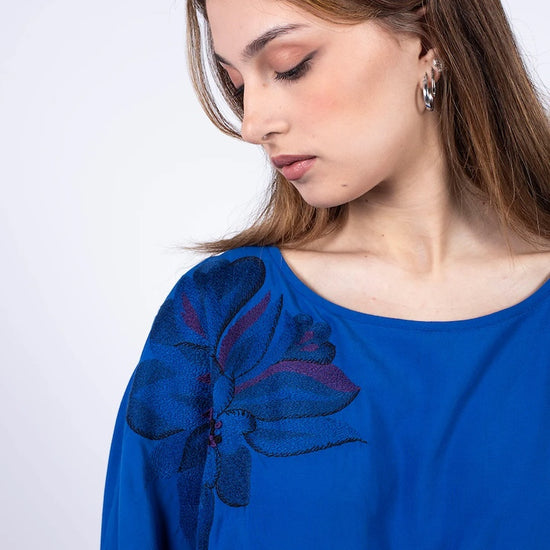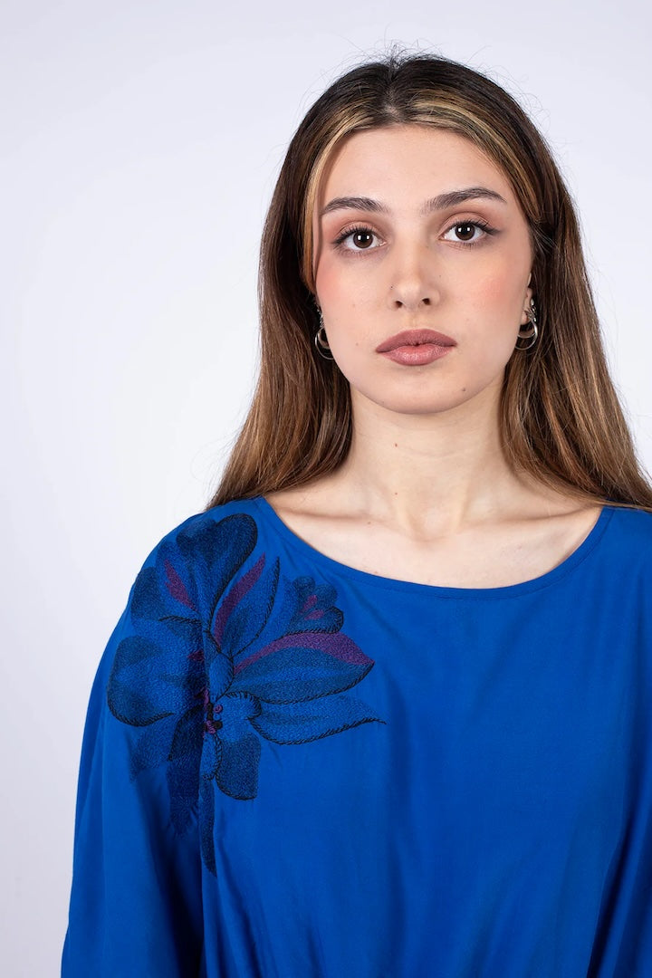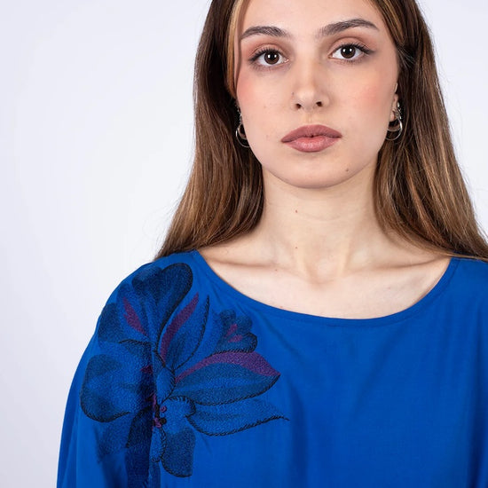 environmentally friendly. The hand-embroidered floral details are meticulously created by skilled artisans, adding a unique touch to this exceptional piece.
