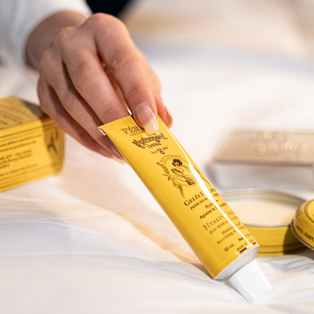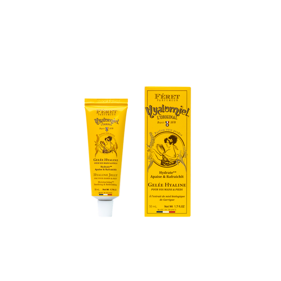 Hyalomiel Rose by Féret Parfumeur is a timeless French beauty essential. This moisturizing gel blends organic honey with a delicate rose fragrance, offering hydration and softness without a greasy finish.