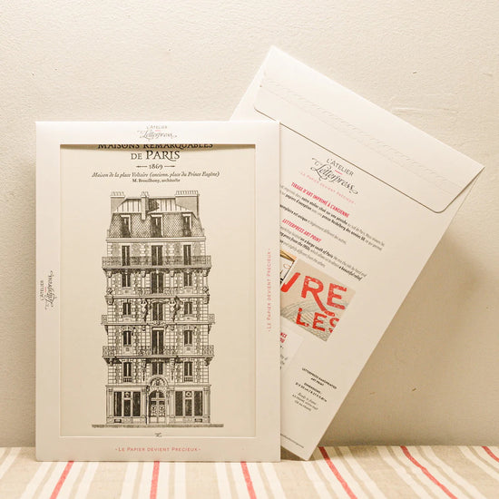 Celebrate the historic charm of Parisian architecture with the Immeuble Place Voltaire, a refined paper sculpture designed and handcrafted by L’atelier Letterpress in France. Inspired by the elegant façades of the Place Voltaire neighborhood, this miniature artwork brings the essence of authentic Paris into your home.
