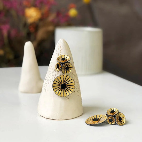 The Kyoto Long Earrings are meticulously handmade in our workshop in Rennes, France. Each stage of their creation is carried out with patience and precision, using carefully selected, high-quality materials. This human-scale craftsmanship ensures a flawless, durable finish — a reflection of authentic French artistry. By wearing them, you carry a piece of locally imagined and crafted design, born from passion and expertise.