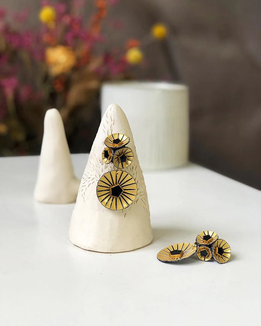 From the careful selection of materials to the final polish, every step in the creation process is guided by a quest for harmony. The artisan enamels, sculpts, and assembles each component with delicate precision, bringing to life a pair of earrings that radiate individuality and balance. The result is a truly unique piece — a golden creation that tells a story of dedication and finesse, from the first touch to the last shimmer.