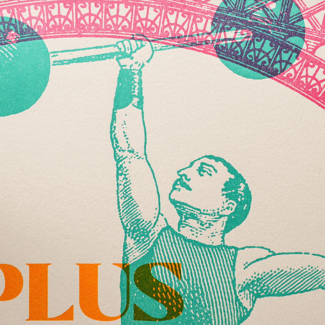 Adorned with vintage engravings of Olympic sports and a vibrant illustration of the Eiffel Tower, this artwork embodies the perseverance and strength that define the Games. At its heart lies the bold, motivating phrase: