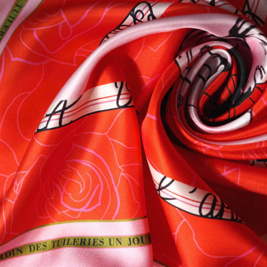 The Le Jardin des Tuileries silk square draws its charm from the serene beauty of one of Paris’s most treasured gardens. Situated between the Louvre and the Place de la Concorde, this historic oasis offers a harmonious blend of manicured pathways, elegant sculptures, and lush greenery. The design reflects this unique atmosphere, capturing the calm elegance and timeless grace that have enchanted Parisians and visitors for centuries.