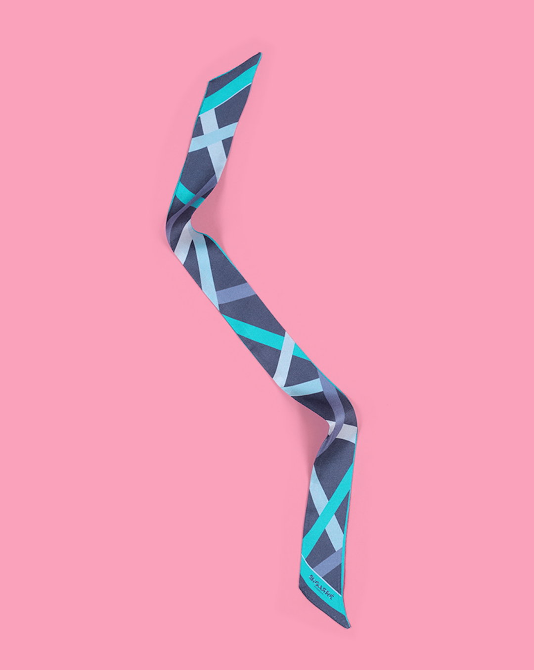 Discover bold French craftsmanship with Le Magnifique Christo – Dark Blue & South Sea Blue, a limited-edition piece created, woven, printed, and made in France. Part of the Christo series, this silk print captivates with colorful stripes that juxtapose, overlap, and intersect, evoking the image of a carefully wrapped and tied package. Inspired by the monumental fabric installations of contemporary artist Christo, this design challenges the perception of traditional sculpture and art.