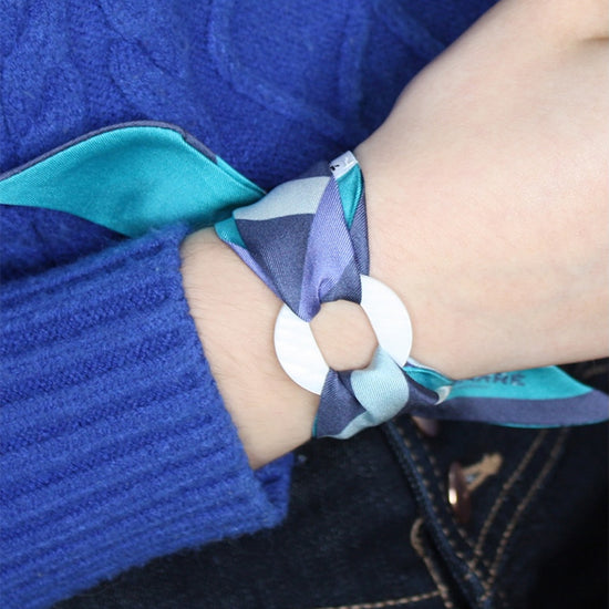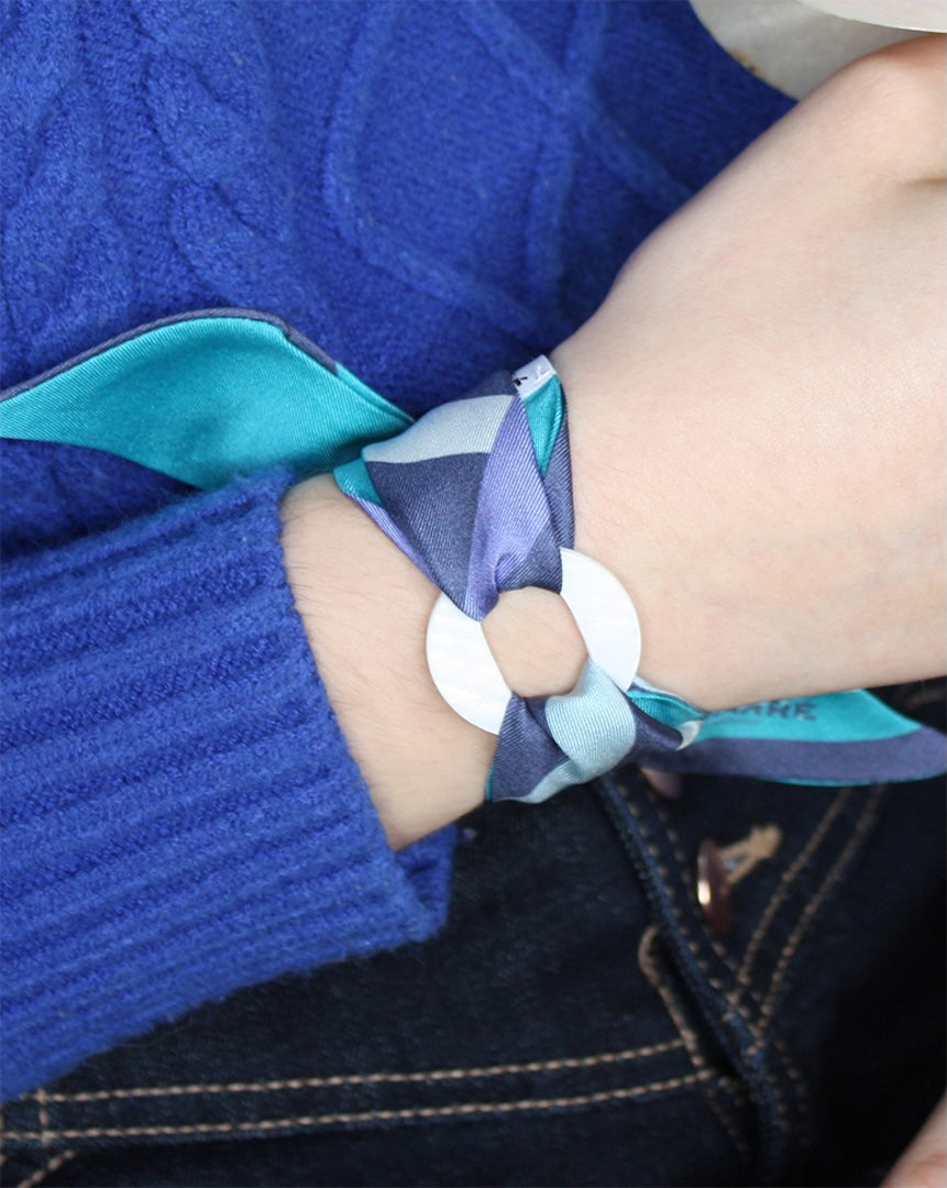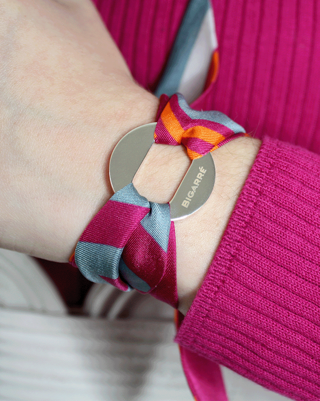 Le Precieux Arian is a silver-plated jewel ring that pairs perfectly with one of our small Le Magnifique long silk scarf, to tie delicately around your wrist.