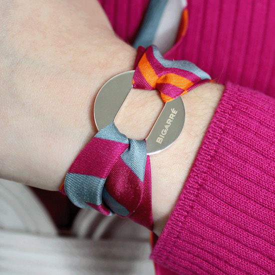 Tied with a loop on a safety pin, it can be attached to a beret or jacket to add a chic, colorful accent. Paired with the Néréo Pearlescent Ring, it becomes a delicate and sophisticated combination that enhances your style.