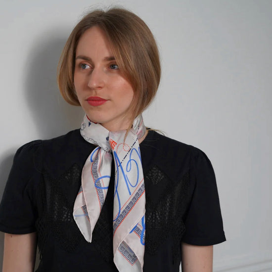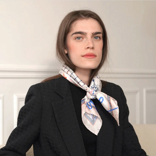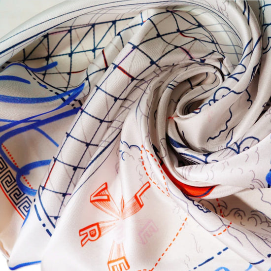 Crafted from the finest silk, this scarf is a statement of sophistication and quality. The design features harmonious hues and refined motifs that reflect the grandeur of French heritage while maintaining a modern sense of style. Each piece is meticulously finished with hand-rolled edges, ensuring an impeccable and luxurious feel.