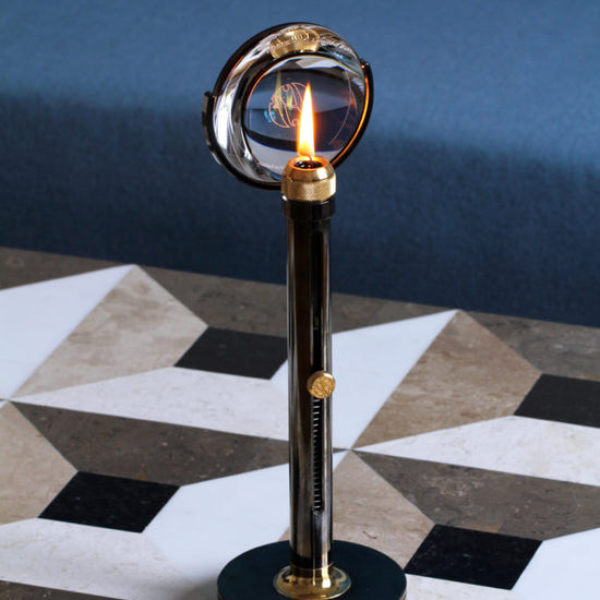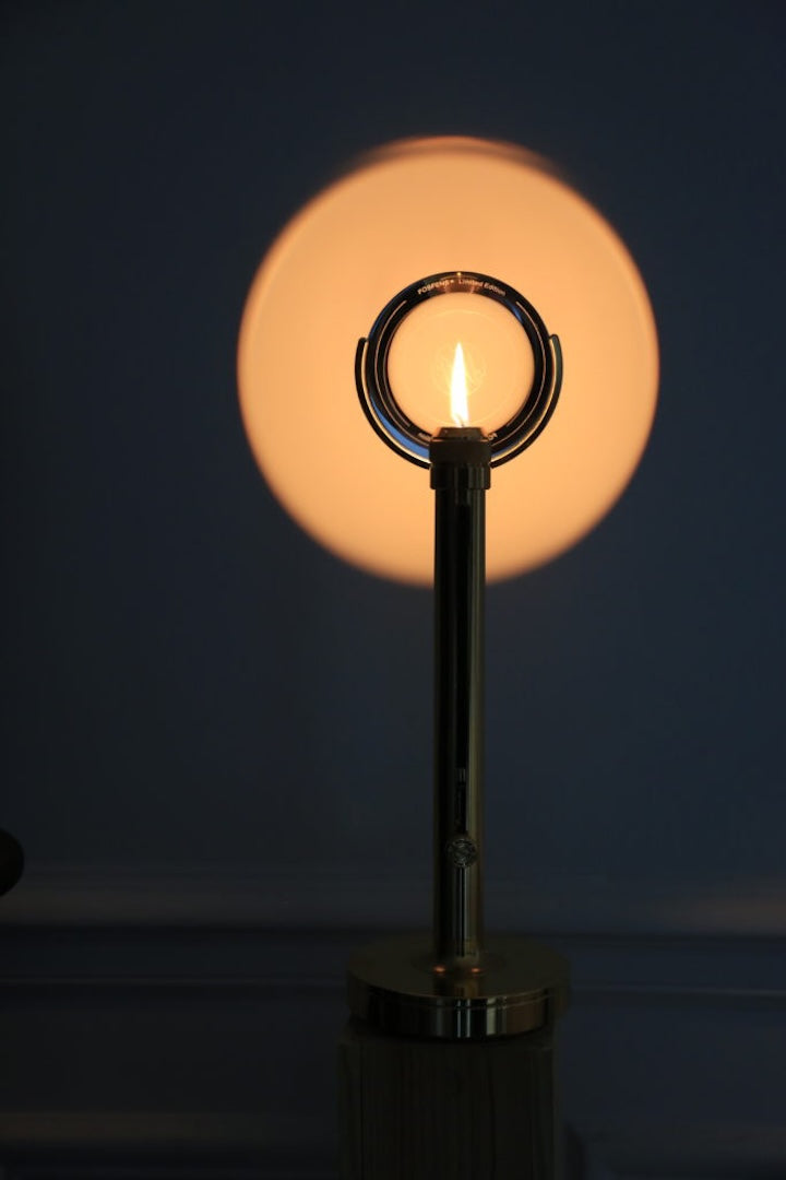 Every detail reveals rare craftsmanship: the signature cameo both adorns and indicates burn time, while a discreet spring mechanism allows effortless candle replacement. The high-precision lens concentrates and sculpts the flame with unmatched control, transforming a simple candle into a focused instrument of light.
