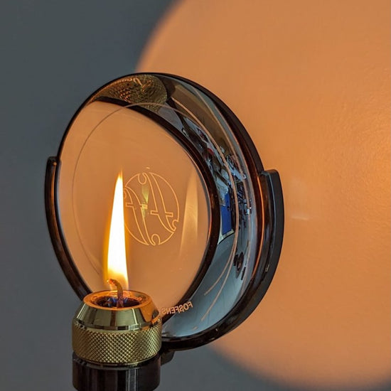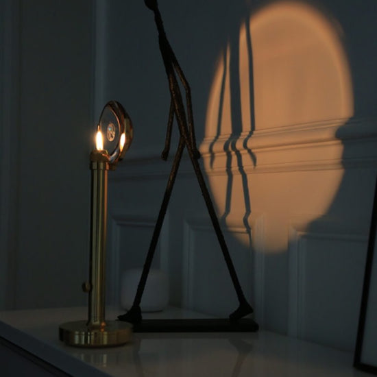 Le Spleen de Paris by FOSFENS reinvents the poetry of candlelight. For the first time, a high-precision optical lens transforms the glow of a traditional candle into a true spotlight, amplifying its intensity to rival historic lanterns and reflector lamps. The result is a radiant, sun-like beam that enhances visual comfort, eases reading, and bathes interiors in a warm, pure halo.