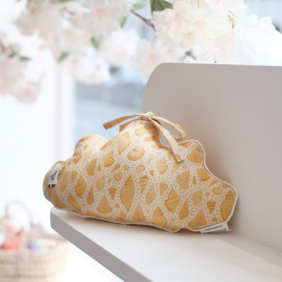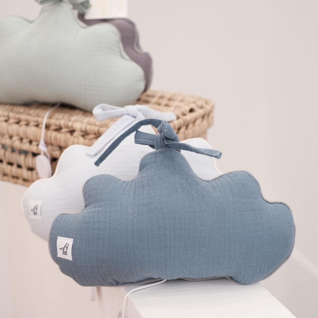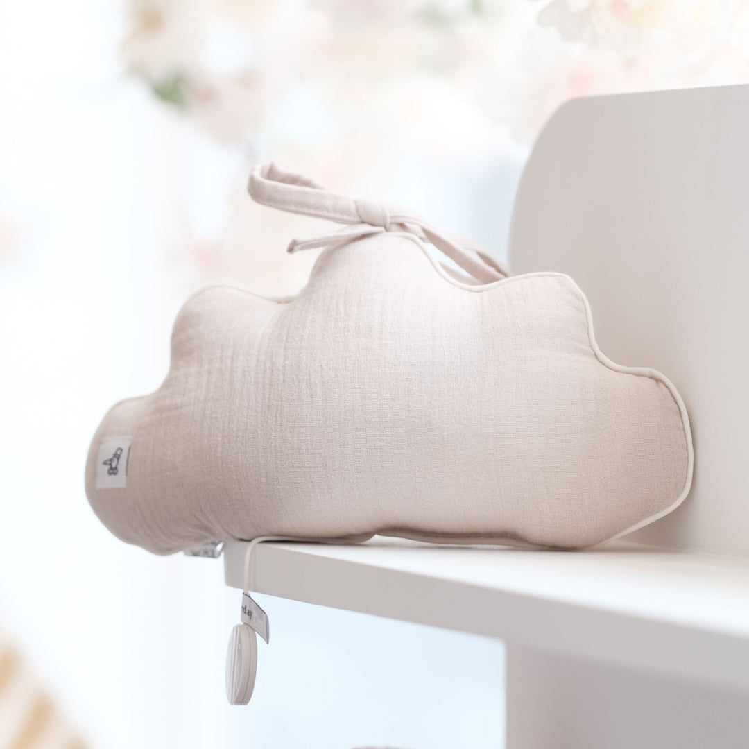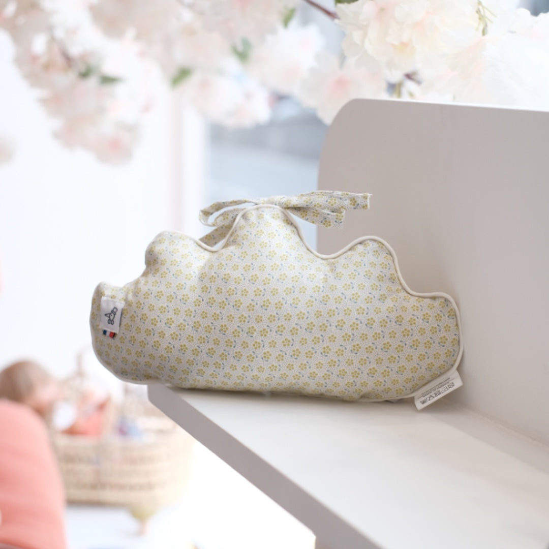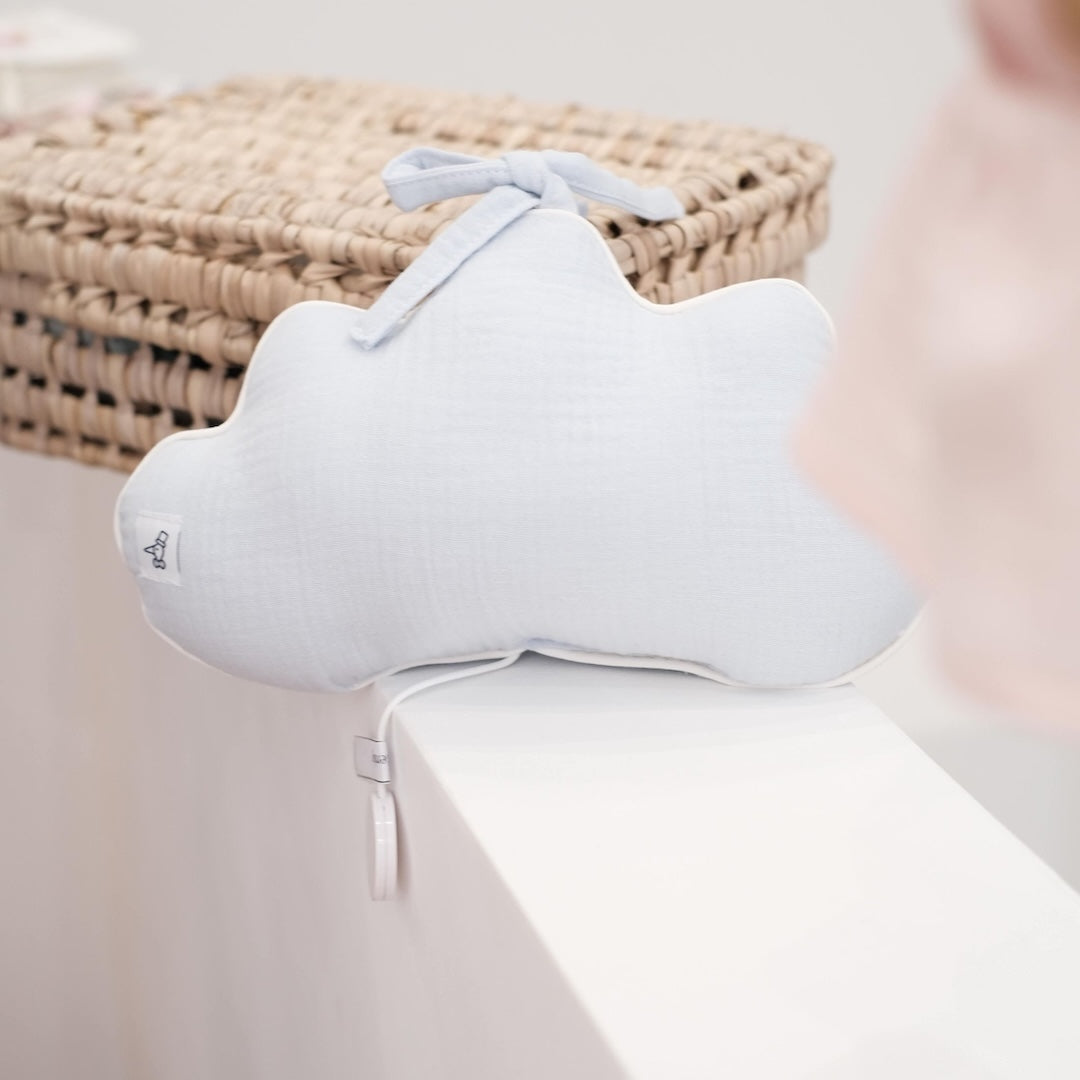 This musical cushion in the shape of a cloud and adorable printed fabric, will give a touch of tenderness and delicacy to the baby's room.