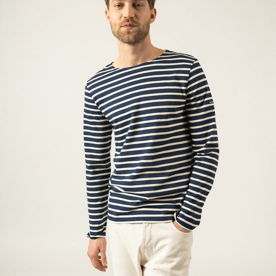 Saint James Unisex Striped Sailor Top – Minquiers ecru/marine