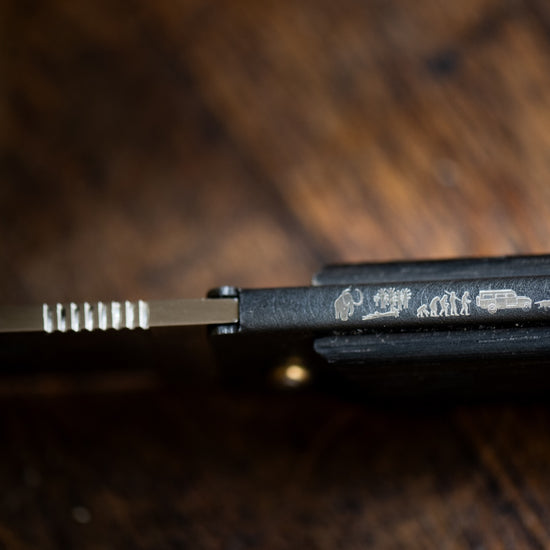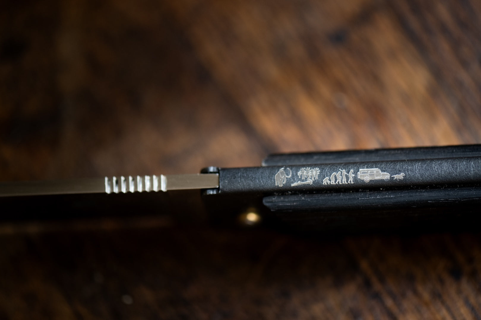 The blade rotates on a stainless steel 304L pivot axle. Two Teflon washers ensure an unusually smooth and precise deployment, while a fixed stop prevents the cutting edge from contacting the internal mechanism when closed. The result is a silky, reliable opening and closing action that feels premium every time you use it.