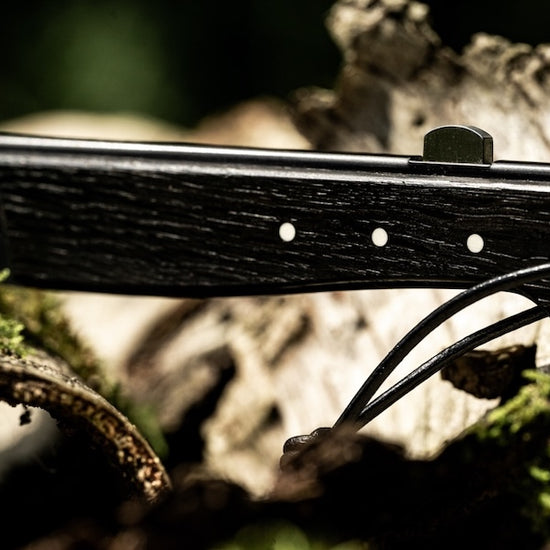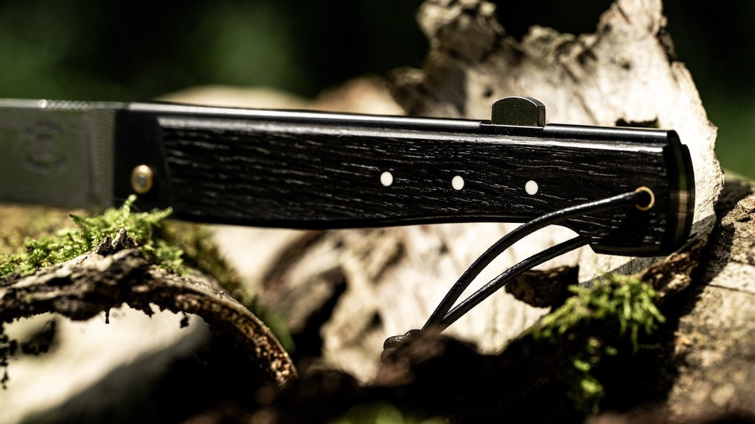 The Morta Lock Back blends contemporary minimalism with a retro touch: a bronzed-steel body reminiscent of vintage weaponry, the visibly proud pump-lock silhouette, and elegant curves. Signature brand details—brass lanyard pass, brass rosette fastenings, a generously sized blade, and a handle covered in genuine Morta (ancient bog oak)—complete the design and ensure each knife develops a unique patina over time.