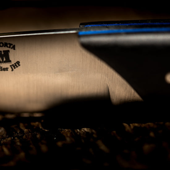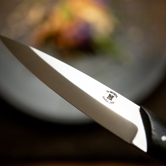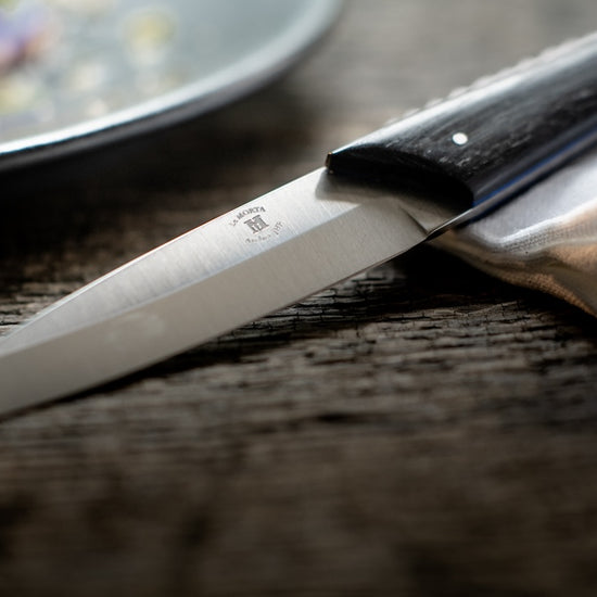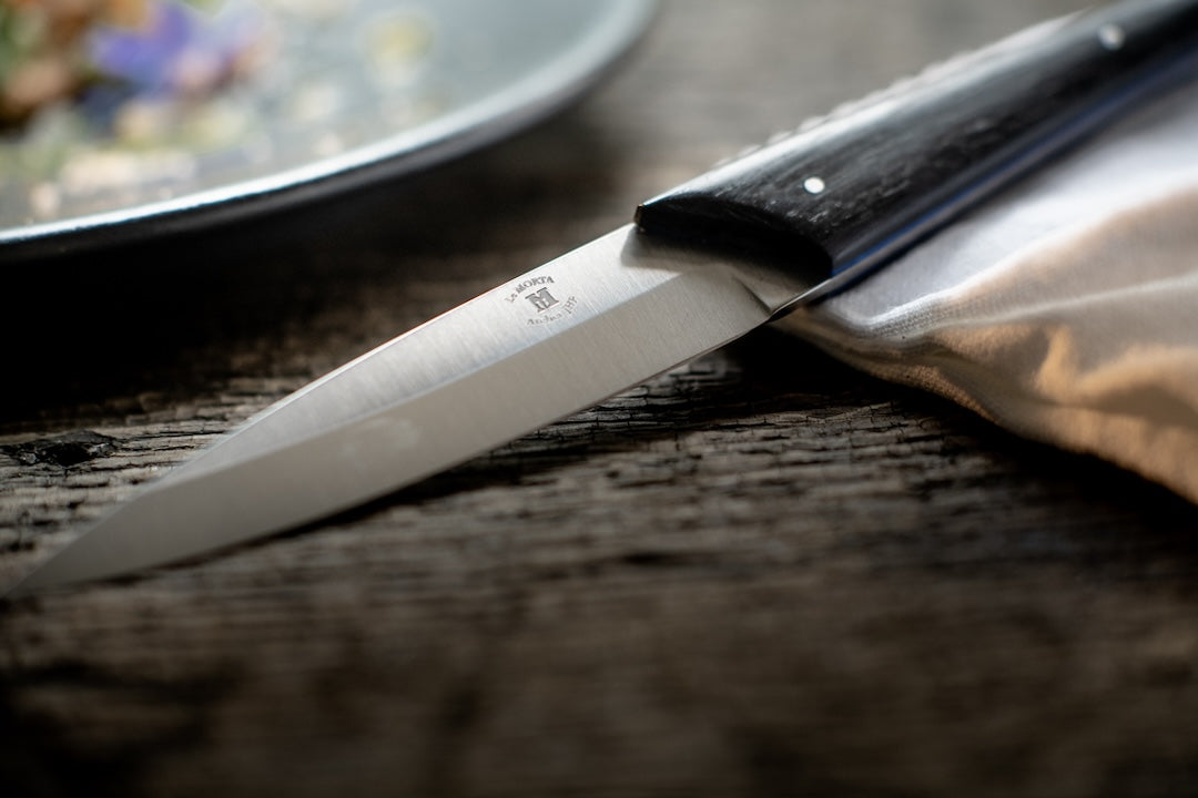 To preserve the beauty and longevity of your Morta knife, avoid exposing the handle to water. Like all knives made from natural materials (wood, horn, etc.), frequent contact with your hand will create a unique patina over time.