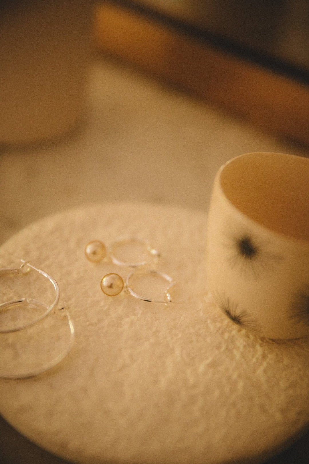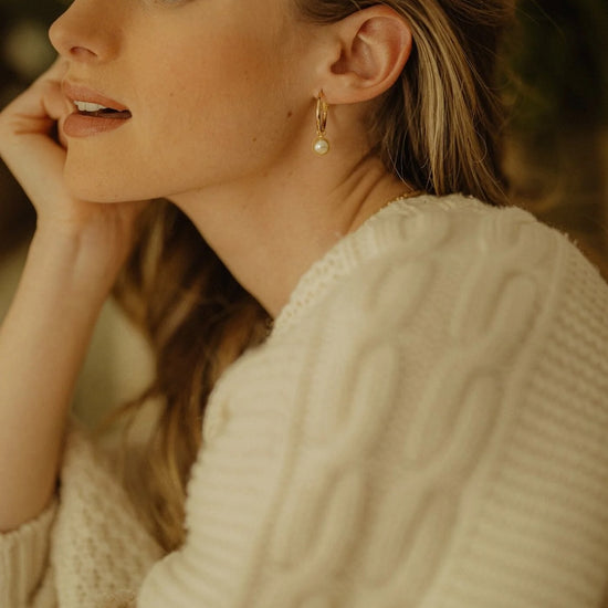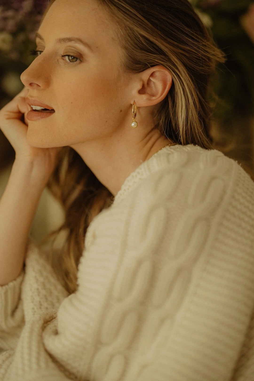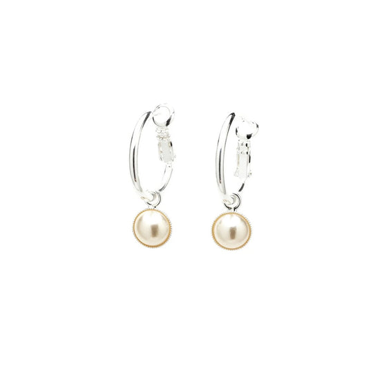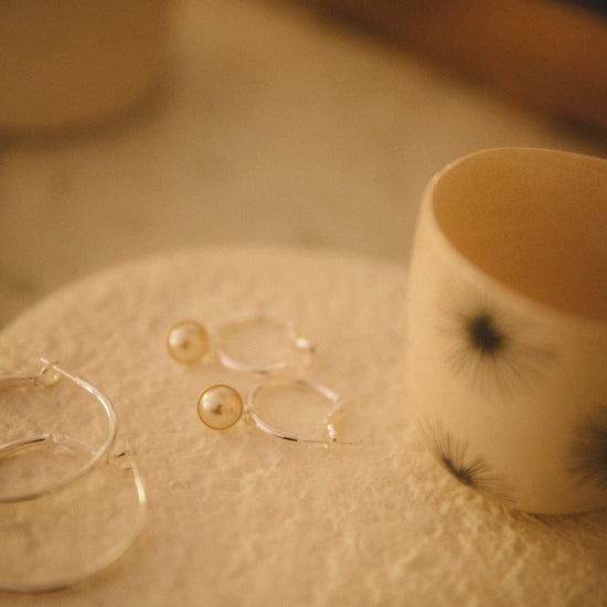 Ø 2 cm - in recycled and RJC-COC certified 24k fine gold plated brass or silver-plated brass with two cream cabochon beads.